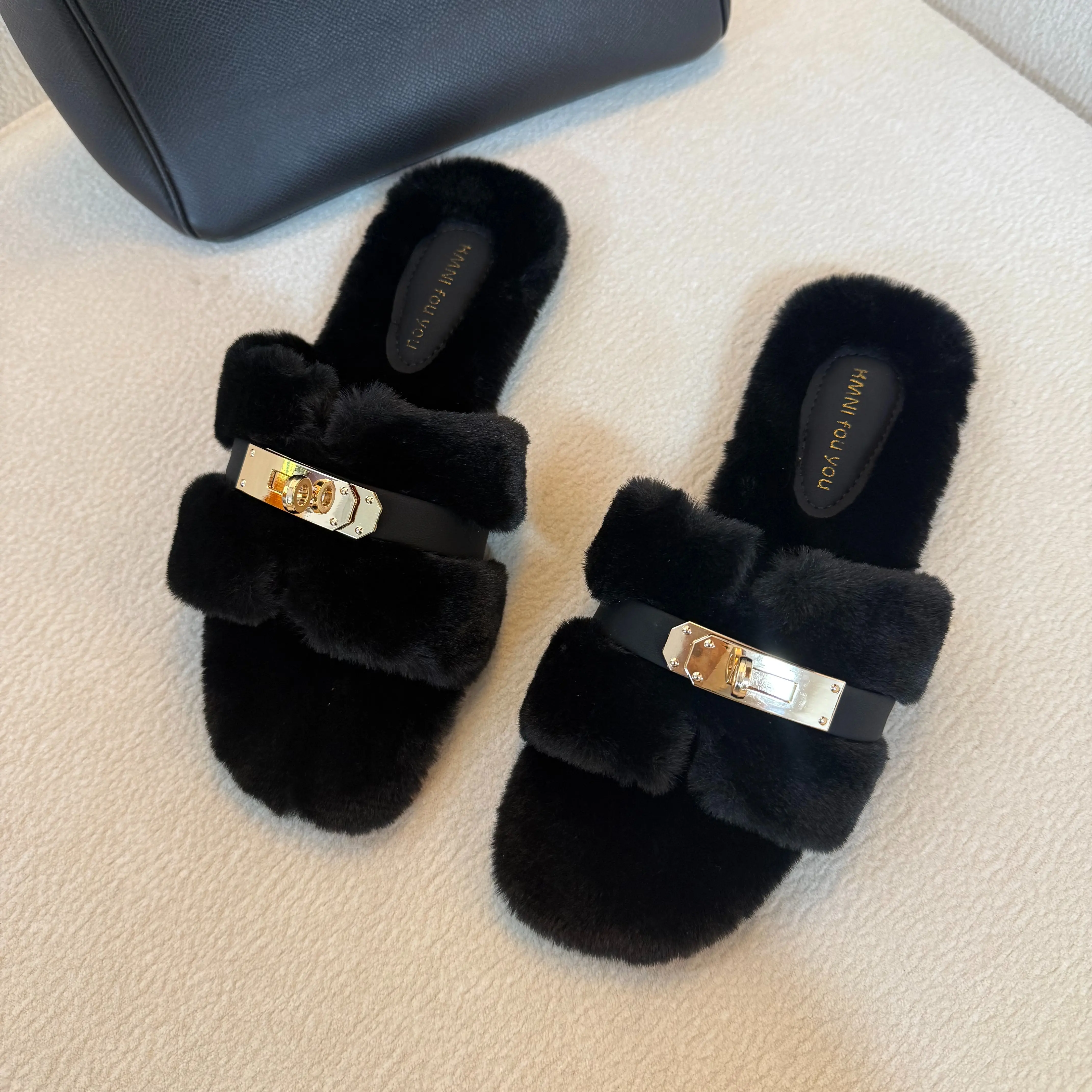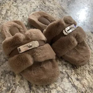 These shoe with fur are so soft and the sole does support as you walk. They have a nice silver lock across the shoe. The delivery was fast and yes I do recommend..