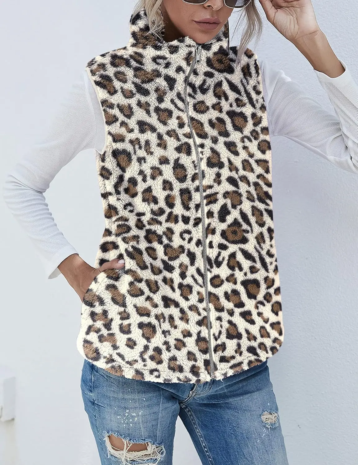 ·Feature: Sleeveless,side pockets, front zipper sherpa fleece vest, stand collar,lightweight, open front, fuzzy cardigan