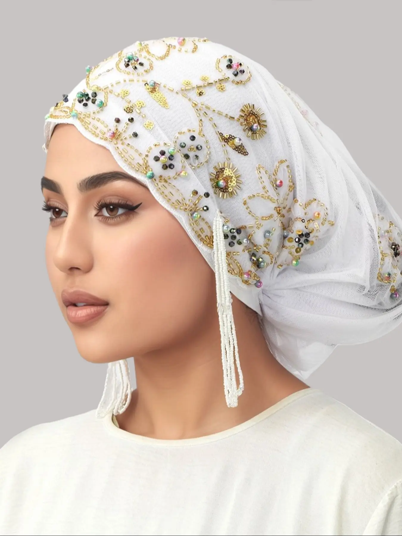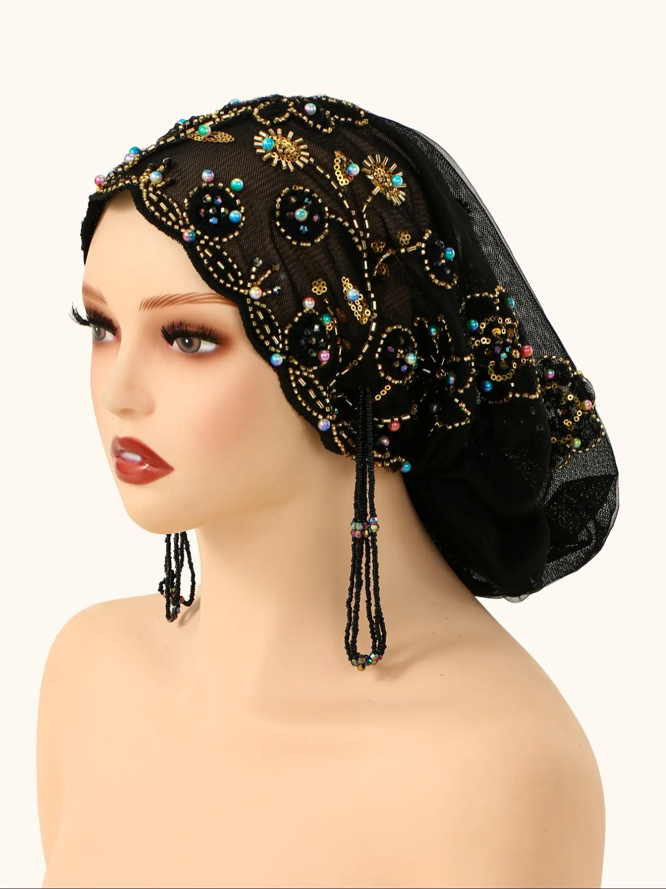 Women's Geometric Print Lace Beaded Headscarf Hat, Bohemian Satin Lined Hijab, Adjustable Ankara Chemotherapy Cap, Jersey Hijabs for Various OccasionsWomen's Geometric Print Lace Beaded Headscarf Hat, Bohemian Satin Lined Hijab, Adjustable Ankara Chemotherapy Cap, Jersey Hijabs for Various OccasionsWomen's Geometric Print Lace Beaded Headscarf Hat, Bohemian Satin Lined Hijab, Adjustable Ankara Chemotherapy Cap, Jersey Hijabs for Various Occasions