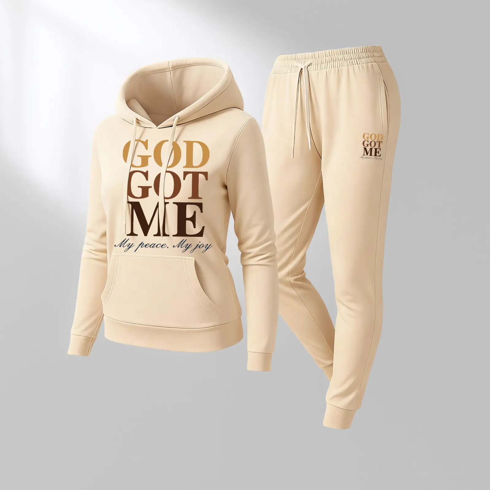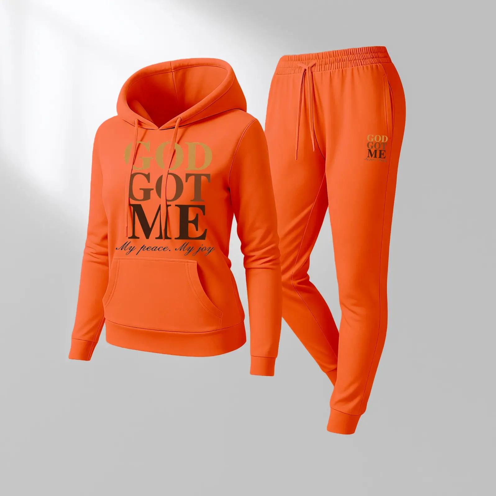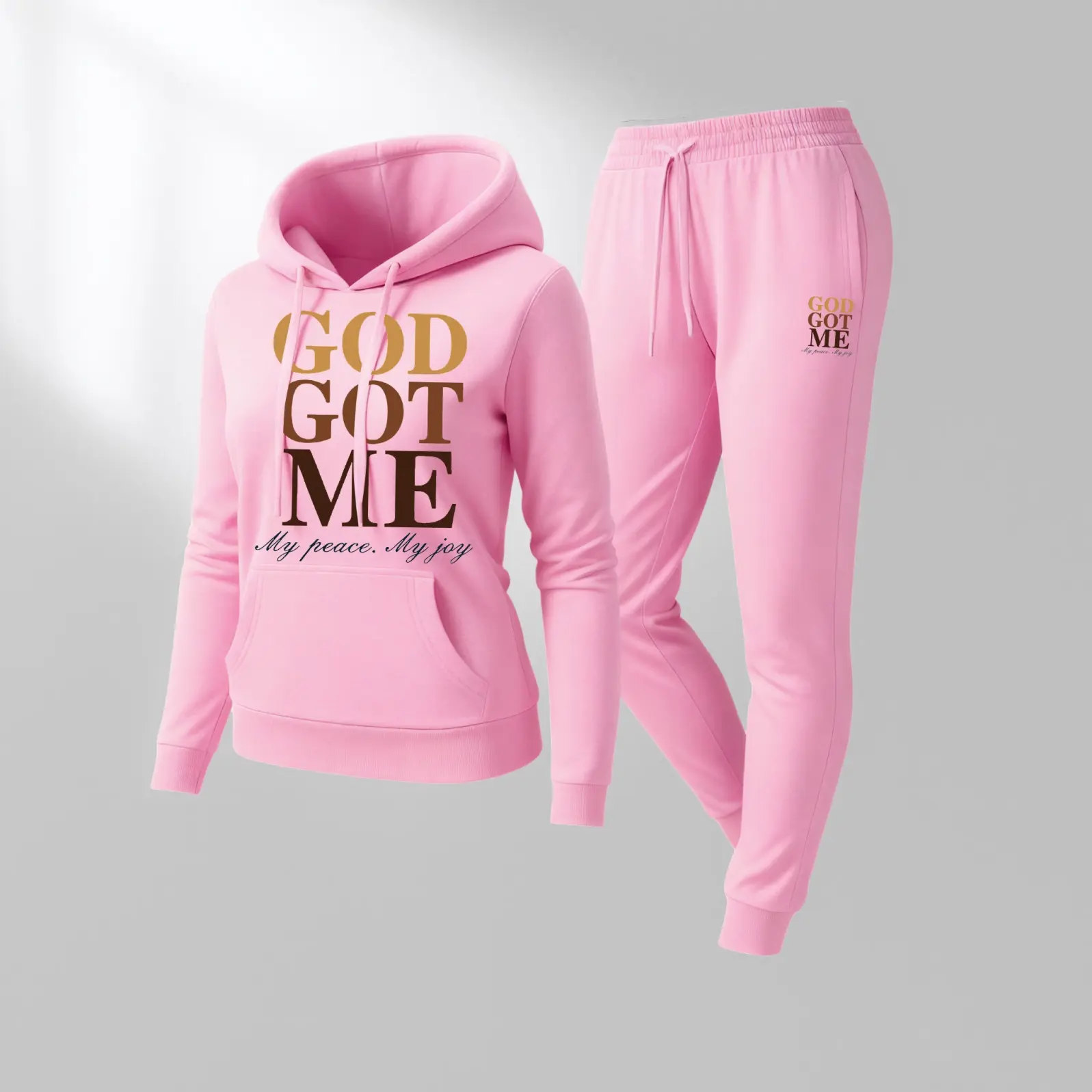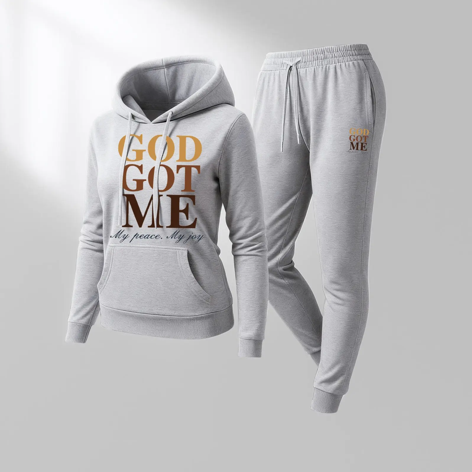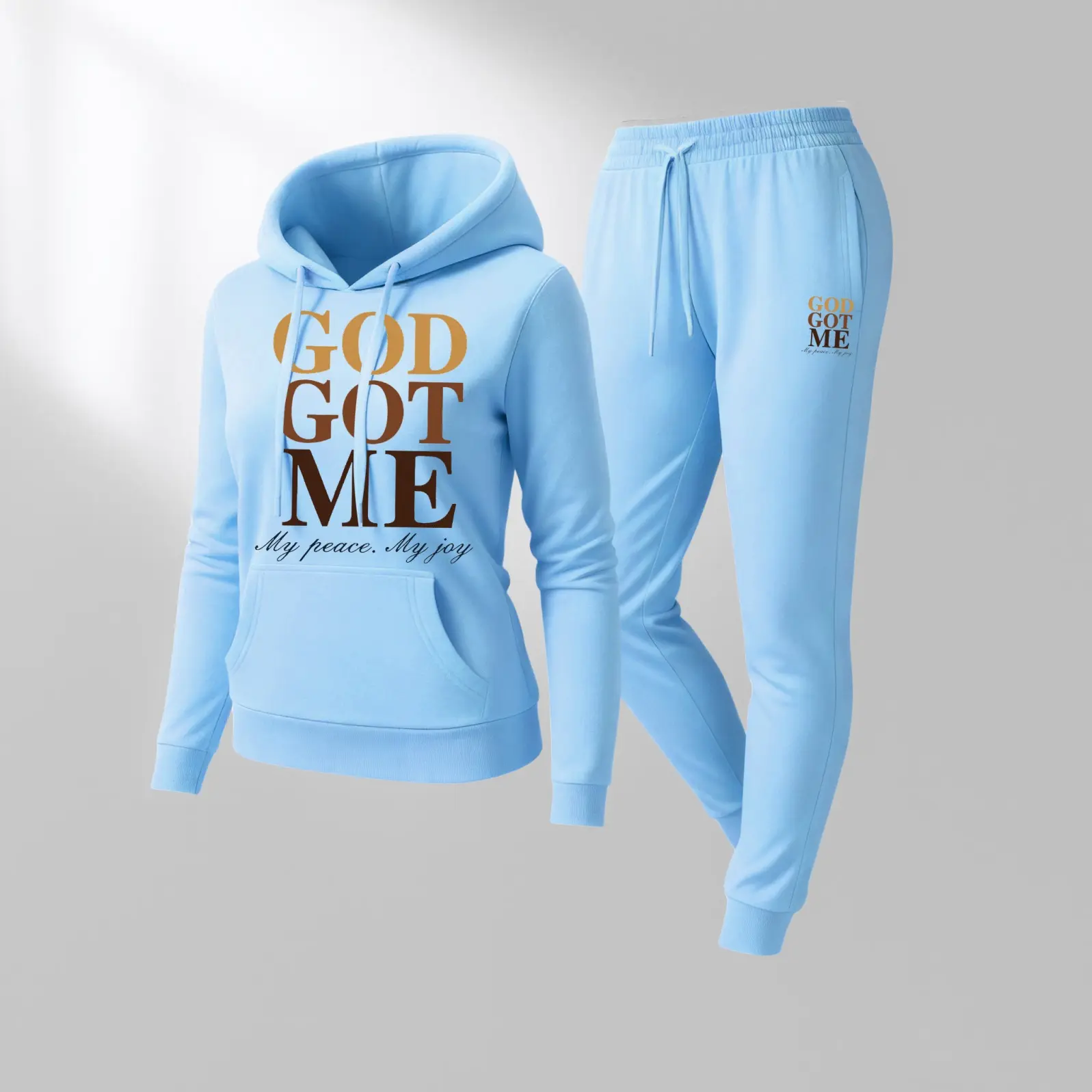 Women's Printed Hoodie & Drawstring Sweatpants Set