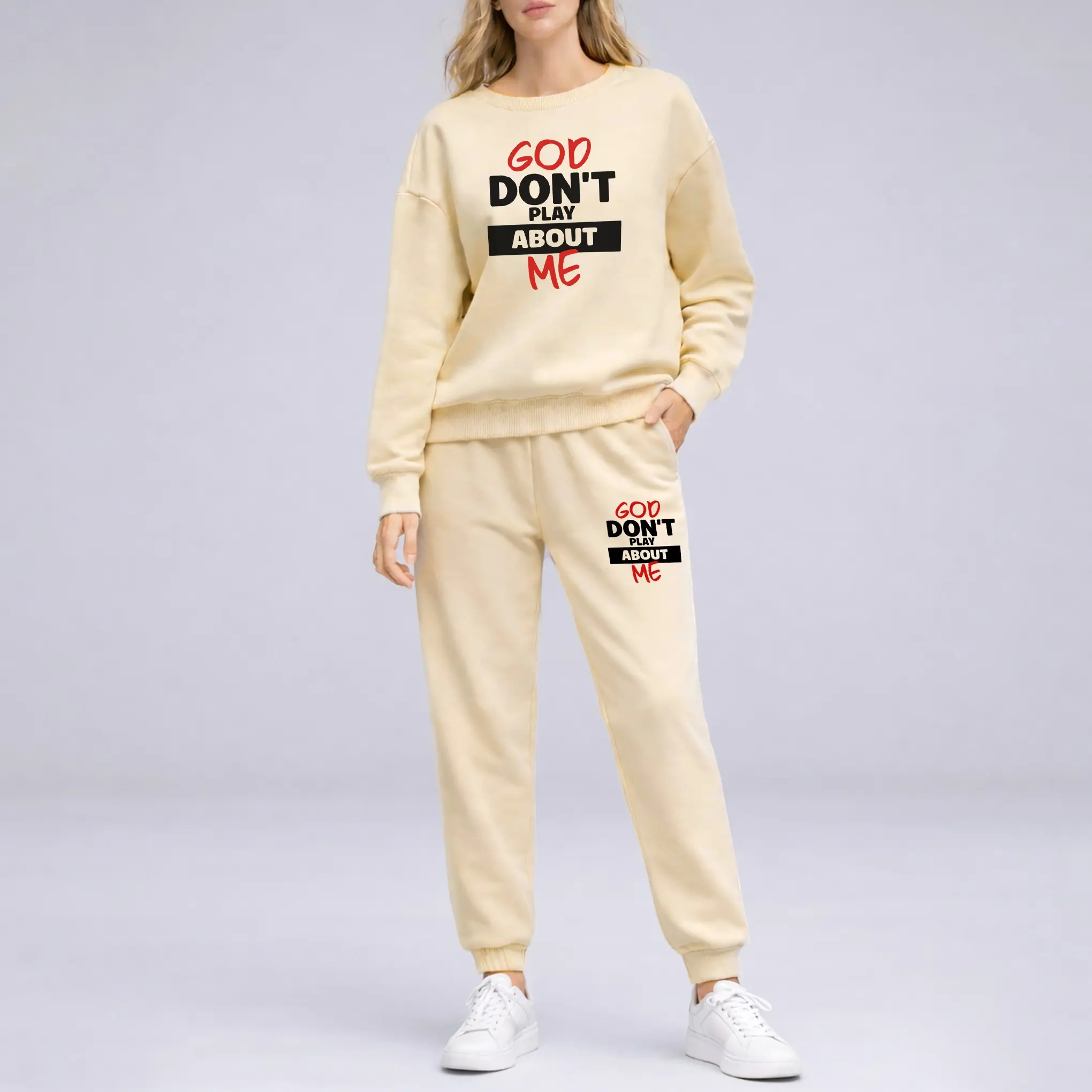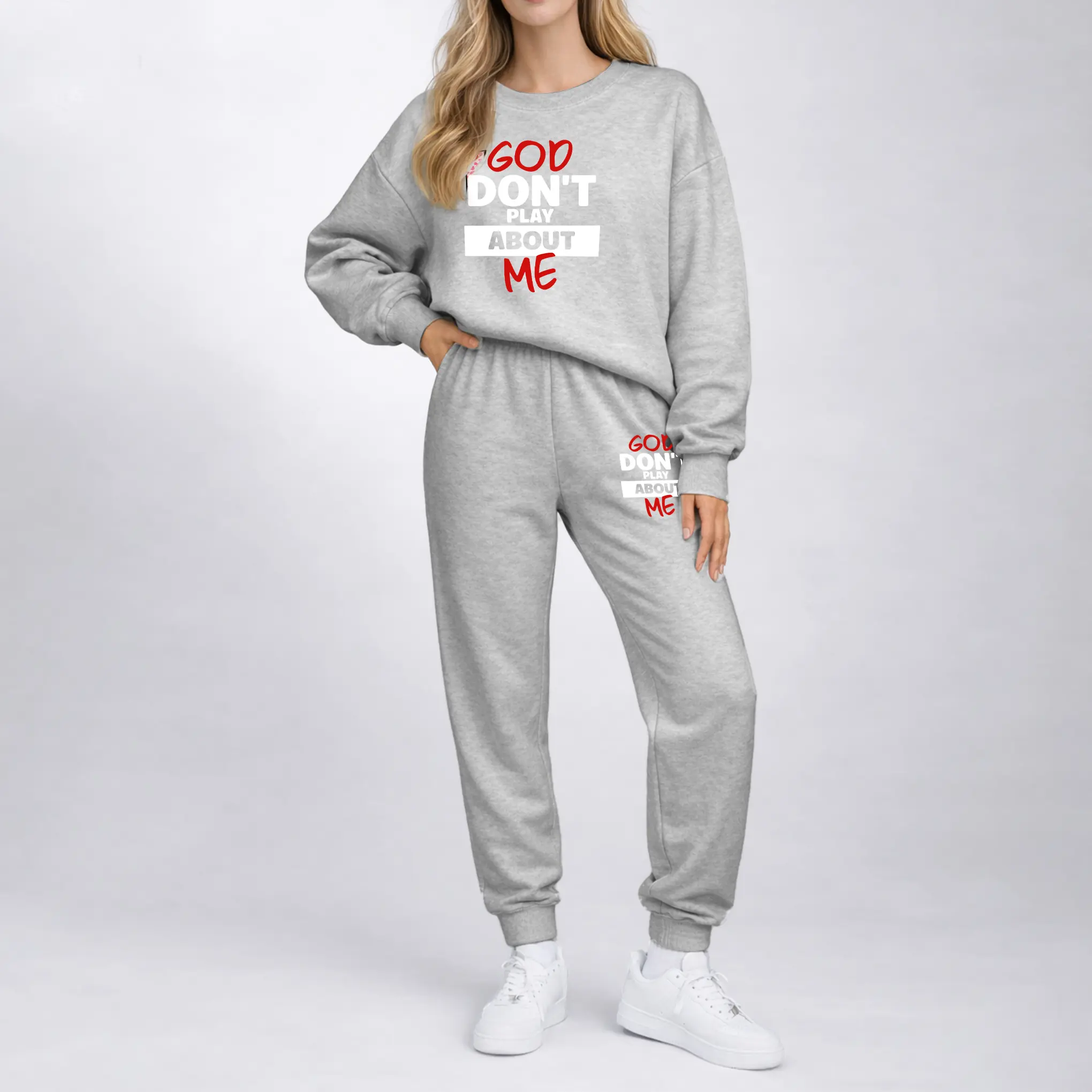 I love the thickness of the outfit, but the pants and sweatshirt has different shades of pink. The pants are a lil darker than the sweatshirt. The fit is perfect.