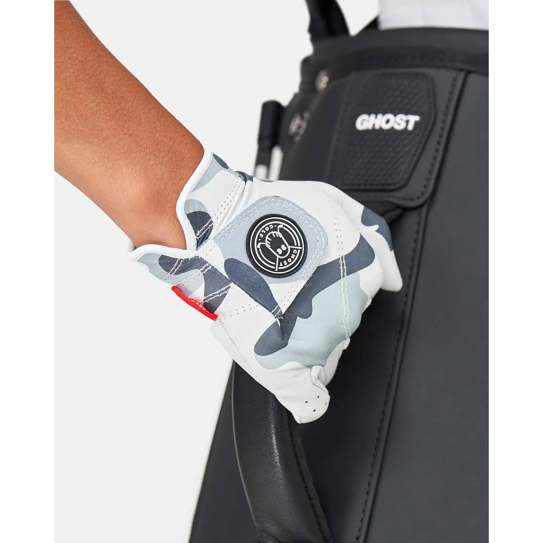 The Women’s Snow Camo Golf Glove is made from AAA 100% Cabretta leather, offering a premium fit and feel. Featuring perforated stretch zones for breathability and flexibility, it provides superior grip. The moisture-wicking dry cuff lining keeps your wrist dry, and the GHOST pull tab makes it easy to wear. USGA conforming for tour-level standards.