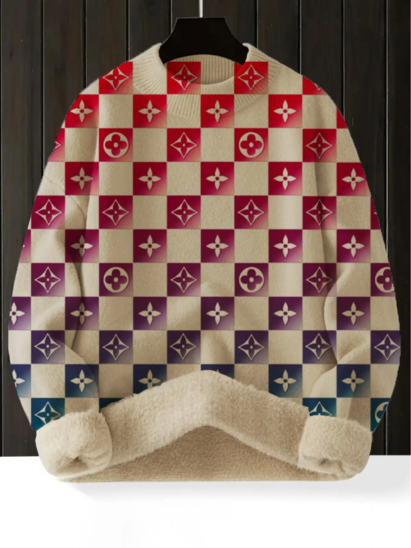 【Geometric Patterns】: Features unique geometric and ombre print, offering a distinct look that sets this sweater apart from others.