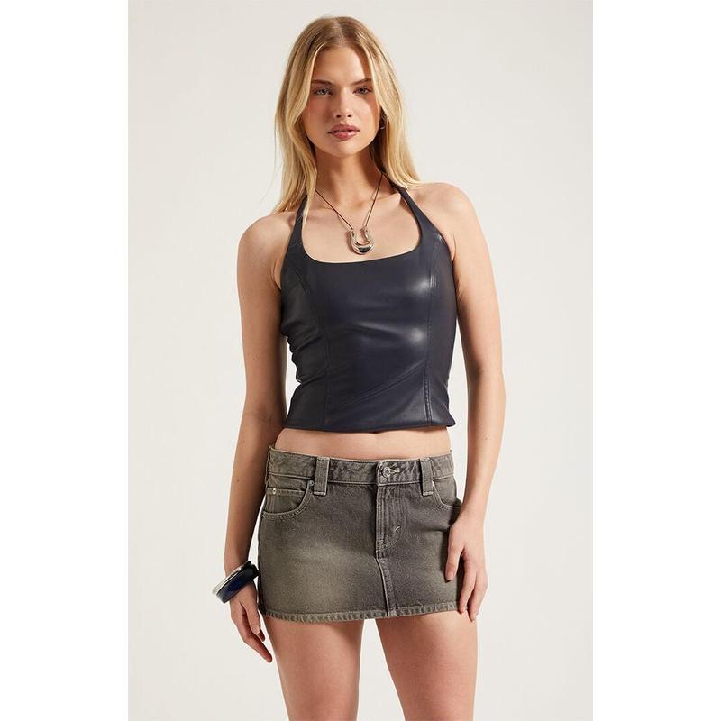 Pacsun keeps things short and sweet with their new Piper Gray Low Rise Denim Micro Mini Skirt. This classic low-rise mini skirt features a versatile gray wash, contrast stitching for added pop, and a flirty micro length.
