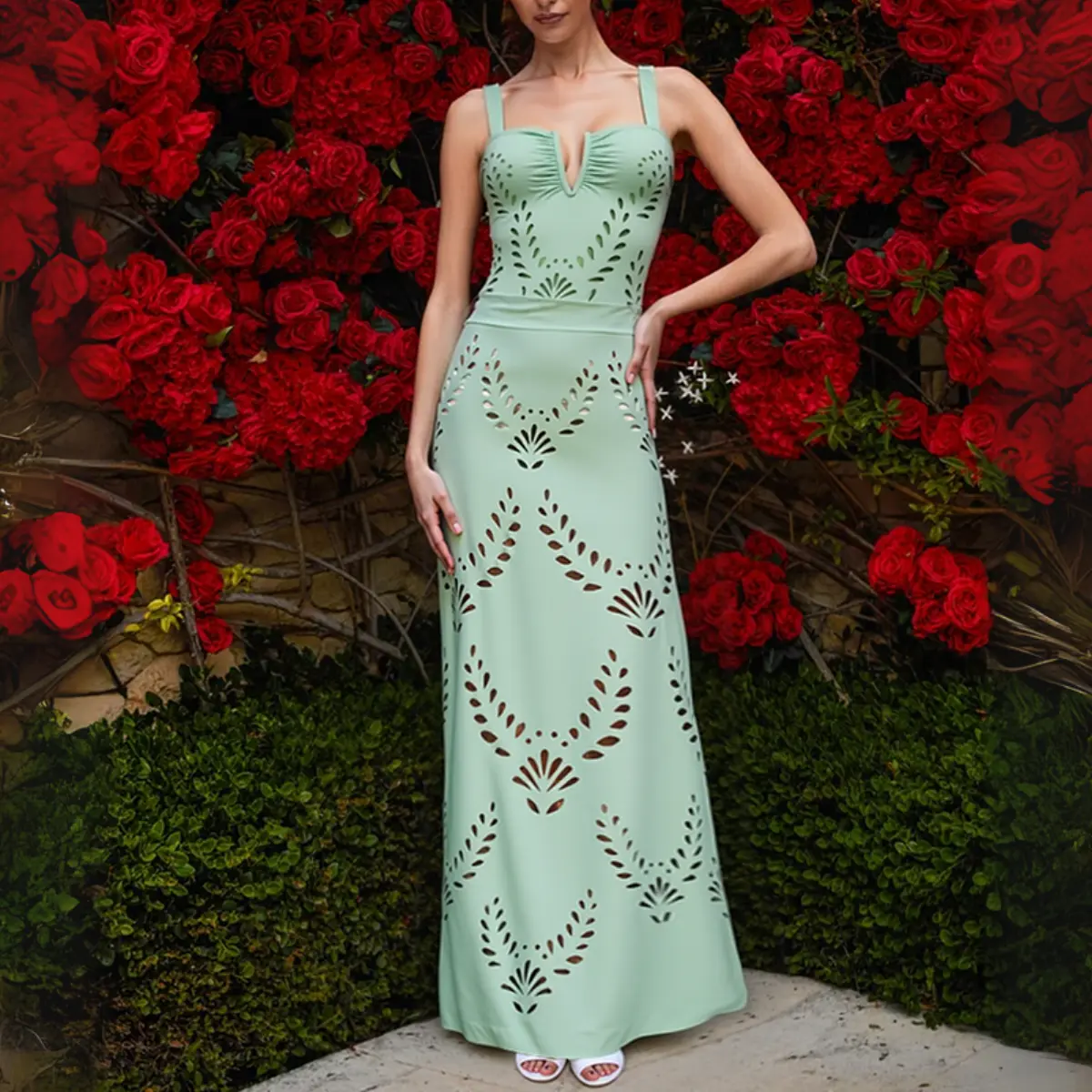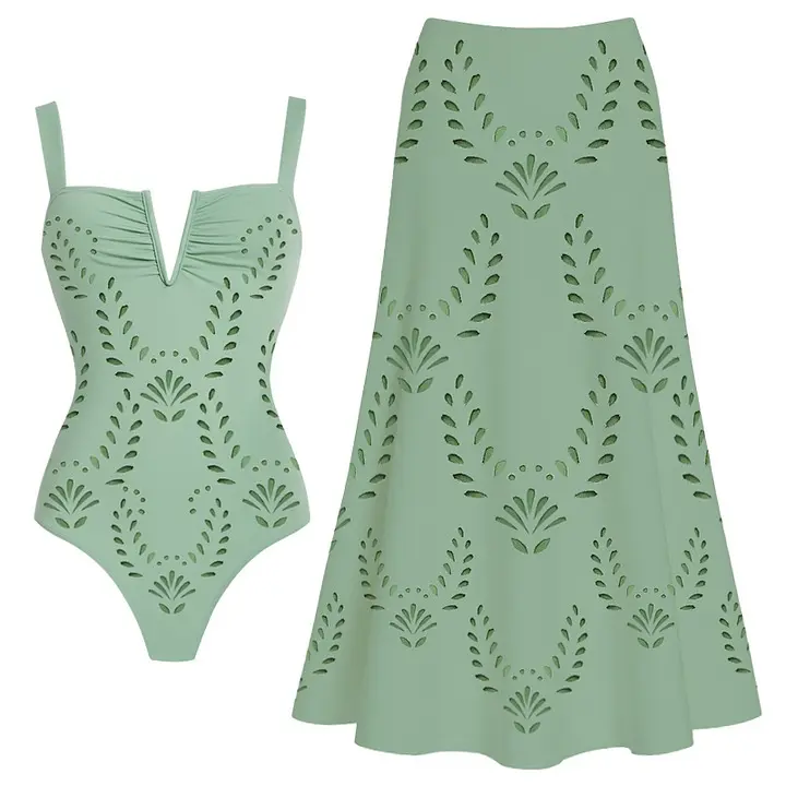 FLAXMAKER Women's Green Laser Cut V Neck One Piece Swimsuit and Skirt Set Swimdress Beachwear Stylish Bathing Suit Beachwear #TikTokShopBlackFriday