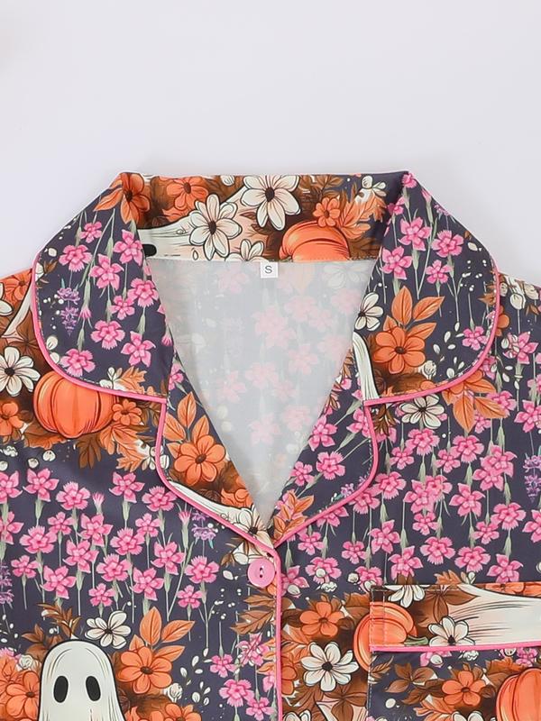 【Unique Print】: Features an eye-catching Halloween and pumpkin floral pattern, setting it apart from typical sleepwear offerings.