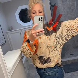 I purchased the snowman sweater and it is adorable. I can wear it with long sleeves, short sleeves, or my favorite way with a cami underneath. It’s lightweight & breathable which makes it perfect for us menopausal women.It can be worn with jeans, slacks, a skirt, or even over a dress.