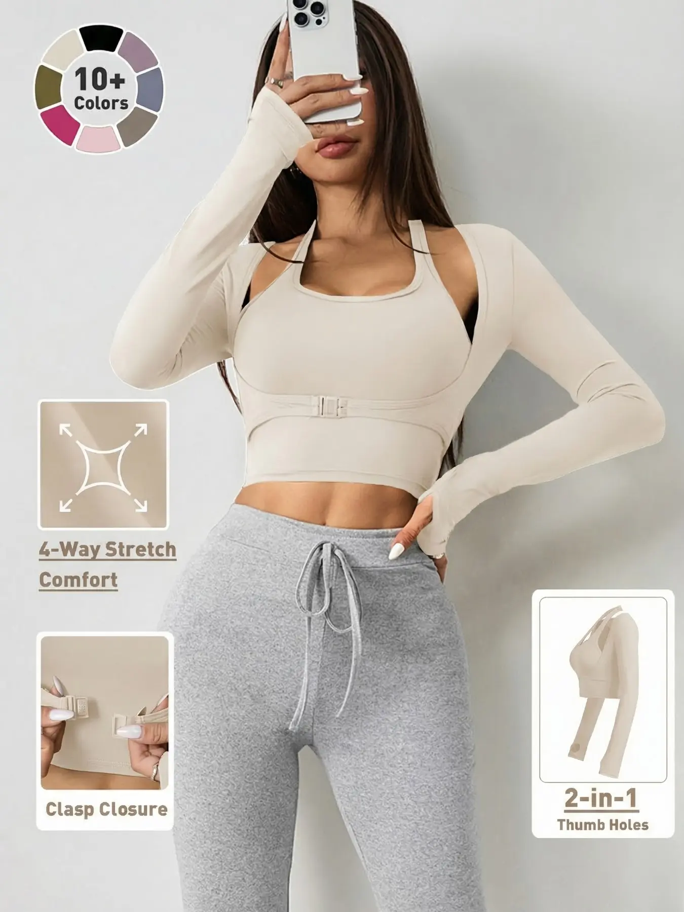 5 stars all the way. One of my happy purchased gym tops. I gotta say it’s the most comfortable top for gym workout. So cute and fitted me perfectly. I love the long sleeves. My first order was 3 different colors and I just ordered 5 more 1 of every colors.