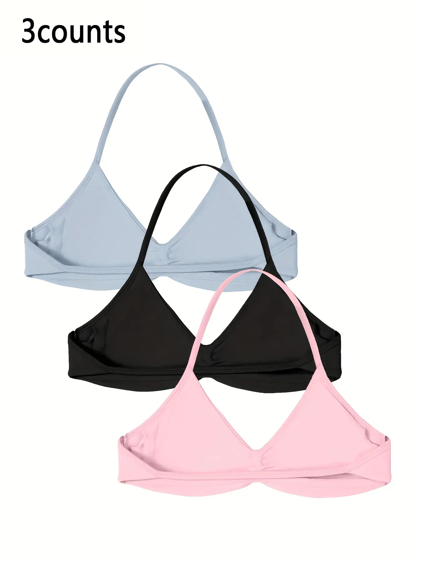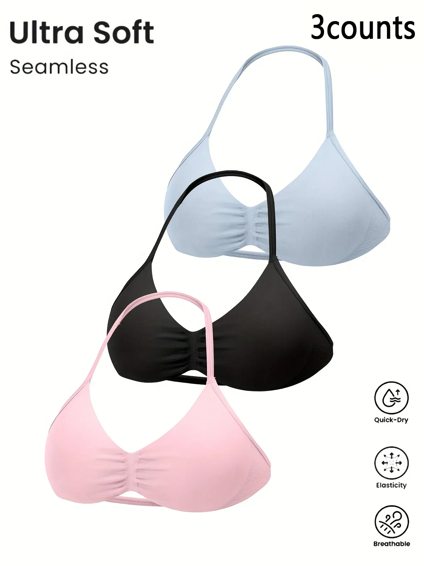 3-piece women's halter-neck, solid color high-elastic nylon backrest fitness bra, body-shaping and comfortable underwear, Breathable Sports Bra