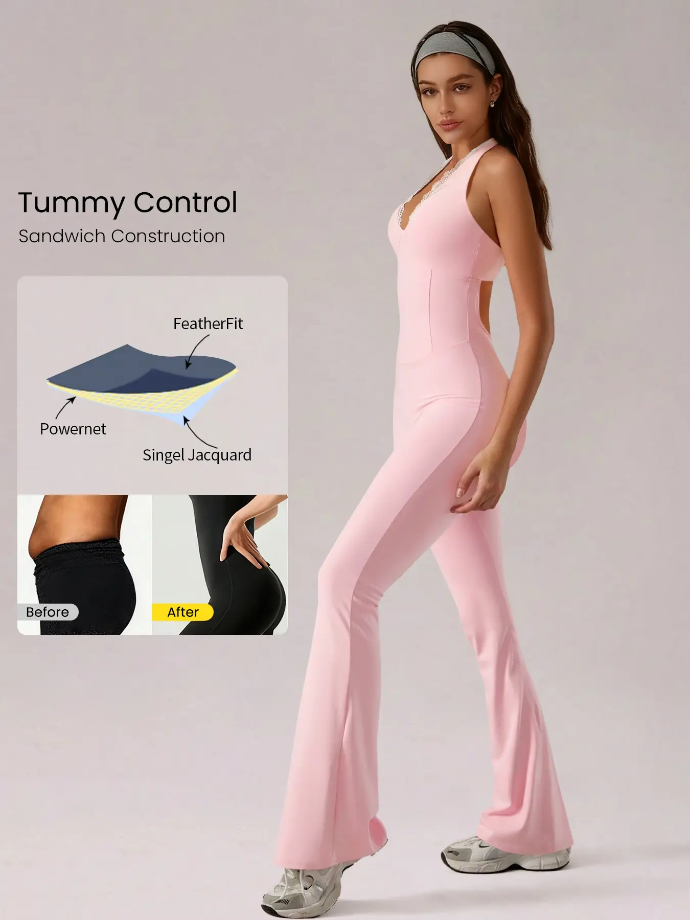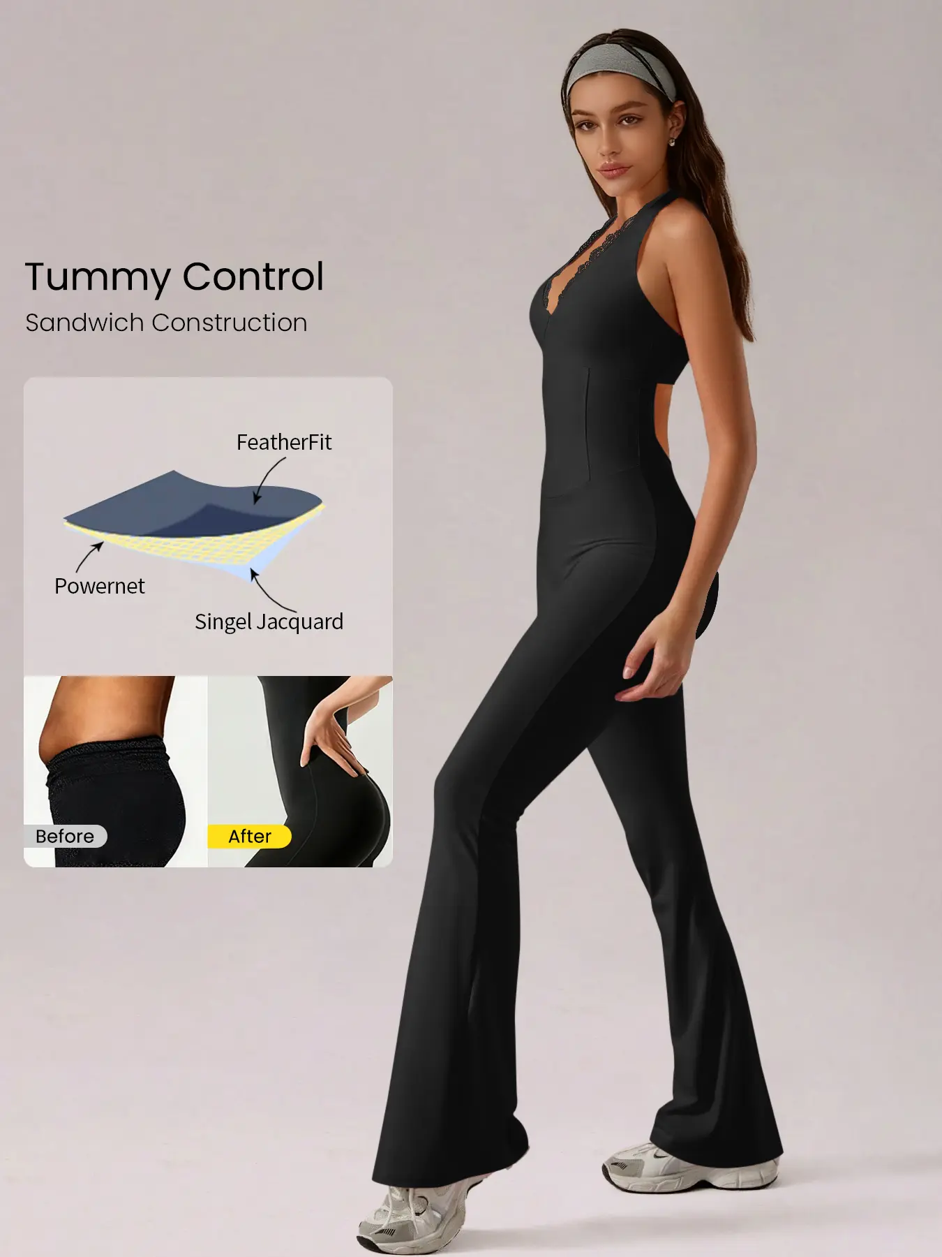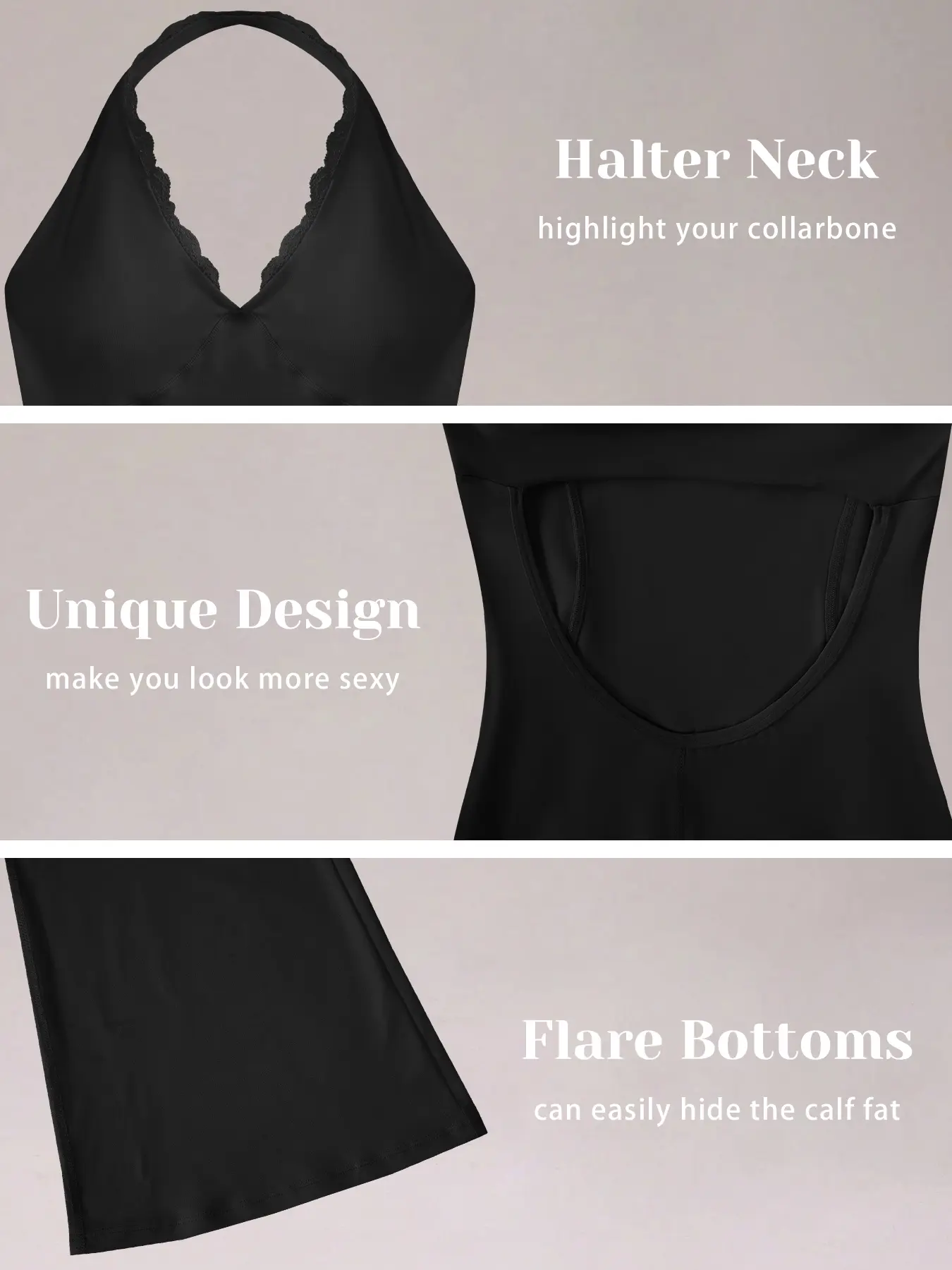5. Women's Halter Neck Yoga Jumpsuit Lace Patchwork V Neck Removable Pads Hollow Out Backless, Sleeveless Tummy Control Casual Solid Color High Stretch Workout Utitard One Piece Jumpsuit For Y2K Yoga Gym Sports Dailywear, Ladies Sportswear All Seasons