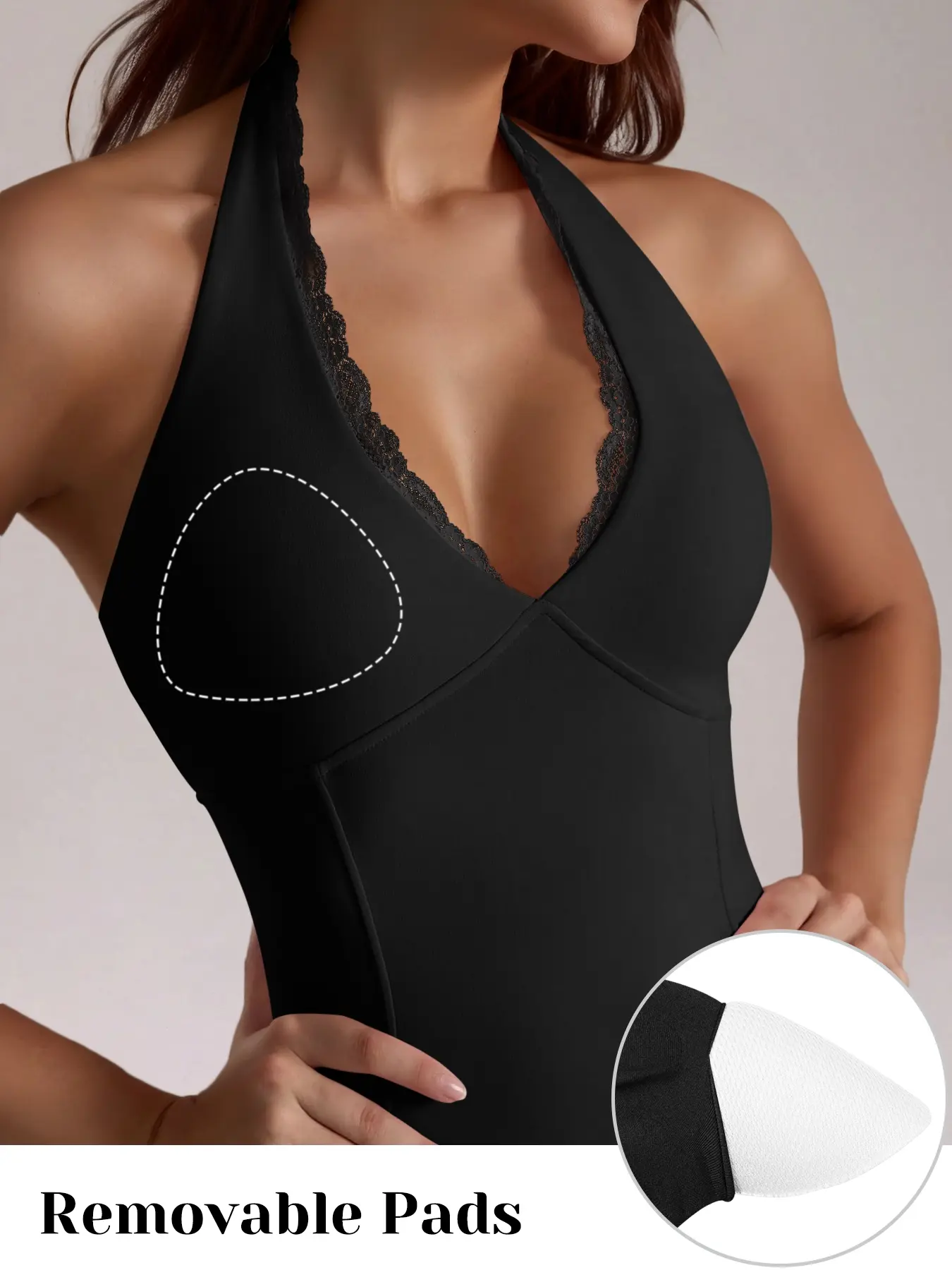 Women's Halter Neck Yoga Jumpsuit Lace Patchwork V Neck Removable Pads Hollow Out Backless, Sleeveless Tummy Control Casual Solid Color High Stretch Workout Utitard One Piece Jumpsuit For Y2K Yoga Gym Sports Dailywear, Ladies Sportswear All SeasonsWomen's Halter Neck Yoga Jumpsuit Lace Patchwork V Neck Removable Pads Hollow Out Backless, Sleeveless Tummy Control Casual Solid Color High Stretch Workout Utitard One Piece Jumpsuit For Y2K Yoga Gym Sports Dailywear, Ladies Sportswear All SeasonsWomen's Halter Neck Yoga Jumpsuit Lace Patchwork V Neck Removable Pads Hollow Out Backless, Sleeveless Tummy Control Casual Solid Color High Stretch Workout Utitard One Piece Jumpsuit For Y2K Yoga Gym Sports Dailywear, Ladies Sportswear All SeasonsWomen's Halter Neck Yoga Jumpsuit Lace Patchwork V Neck Removable Pads Hollow Out Backless, Sleeveless Tummy Control Casual Solid Color High Stretch Workout Utitard One Piece Jumpsuit For Y2K Yoga Gym Sports Dailywear, Ladies Sportswear All Seasons