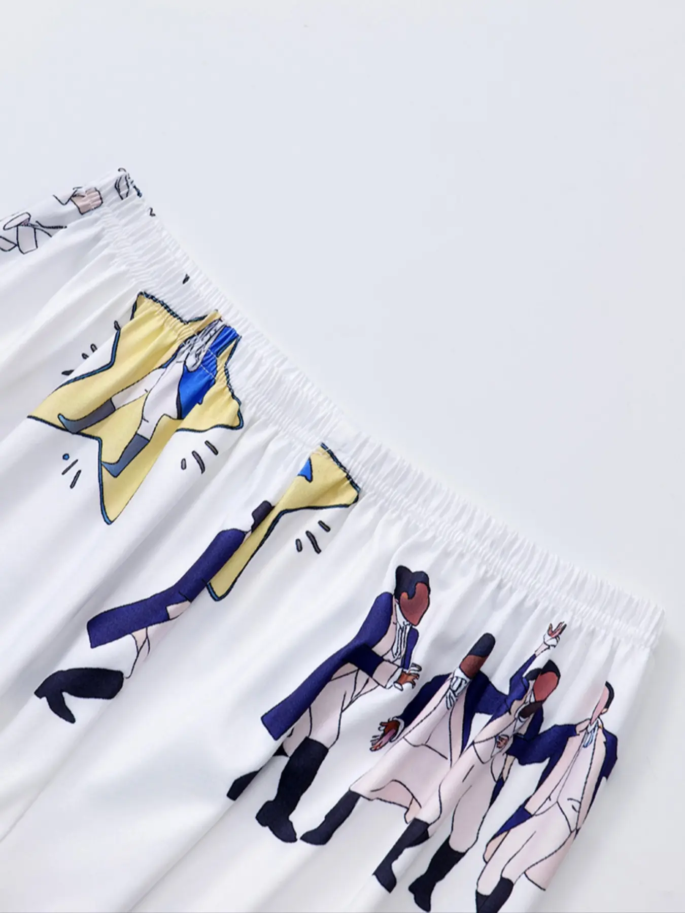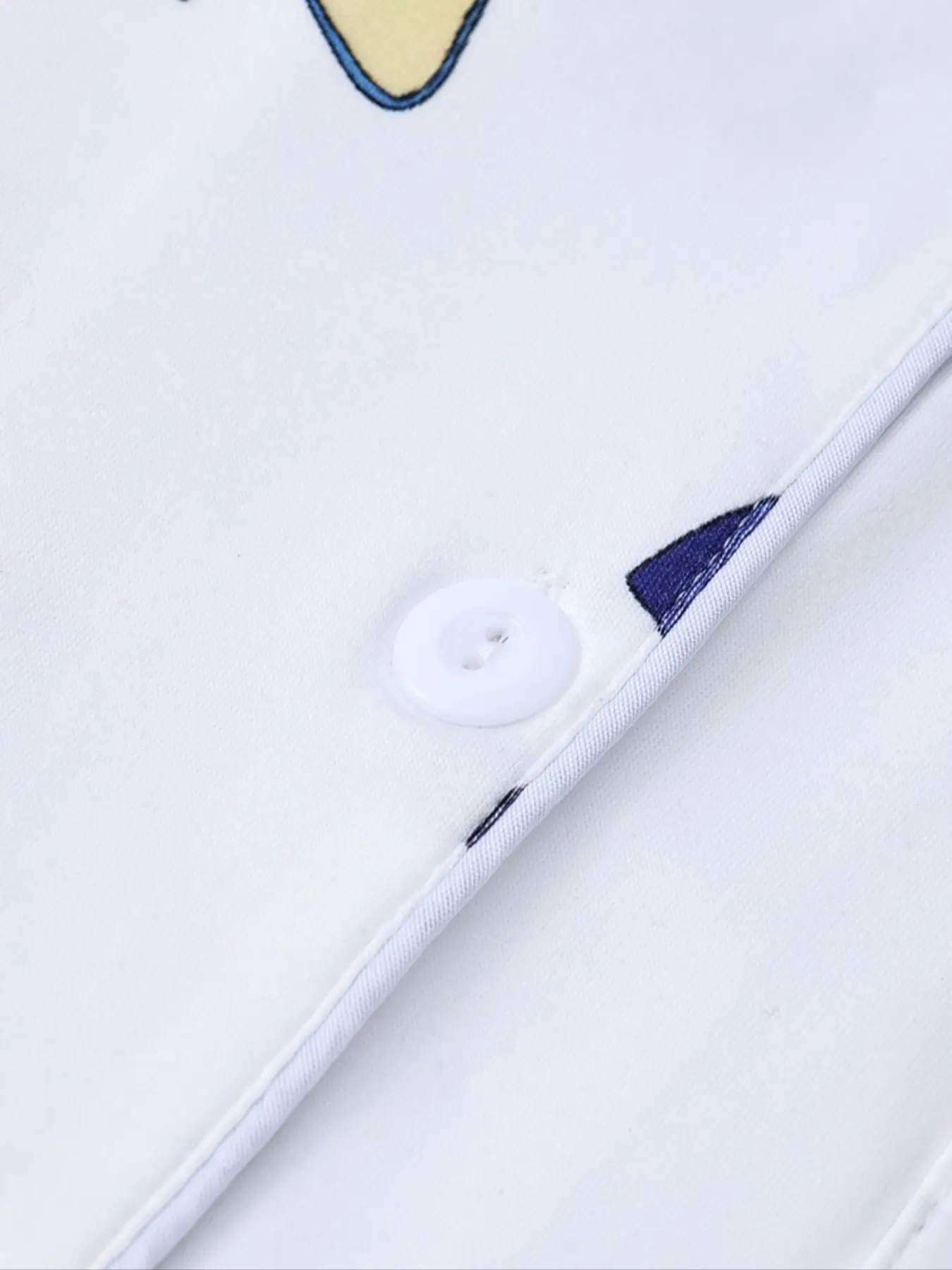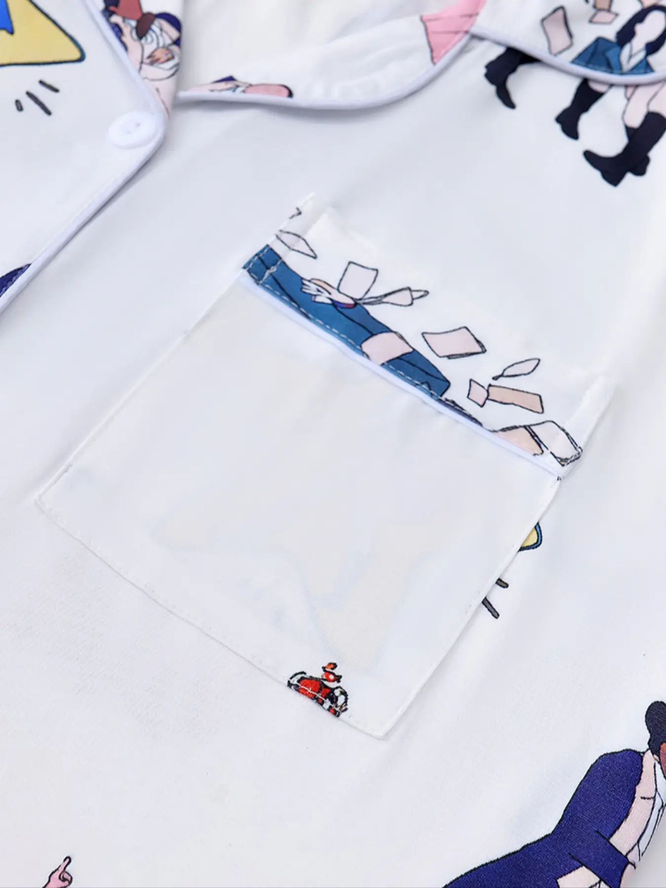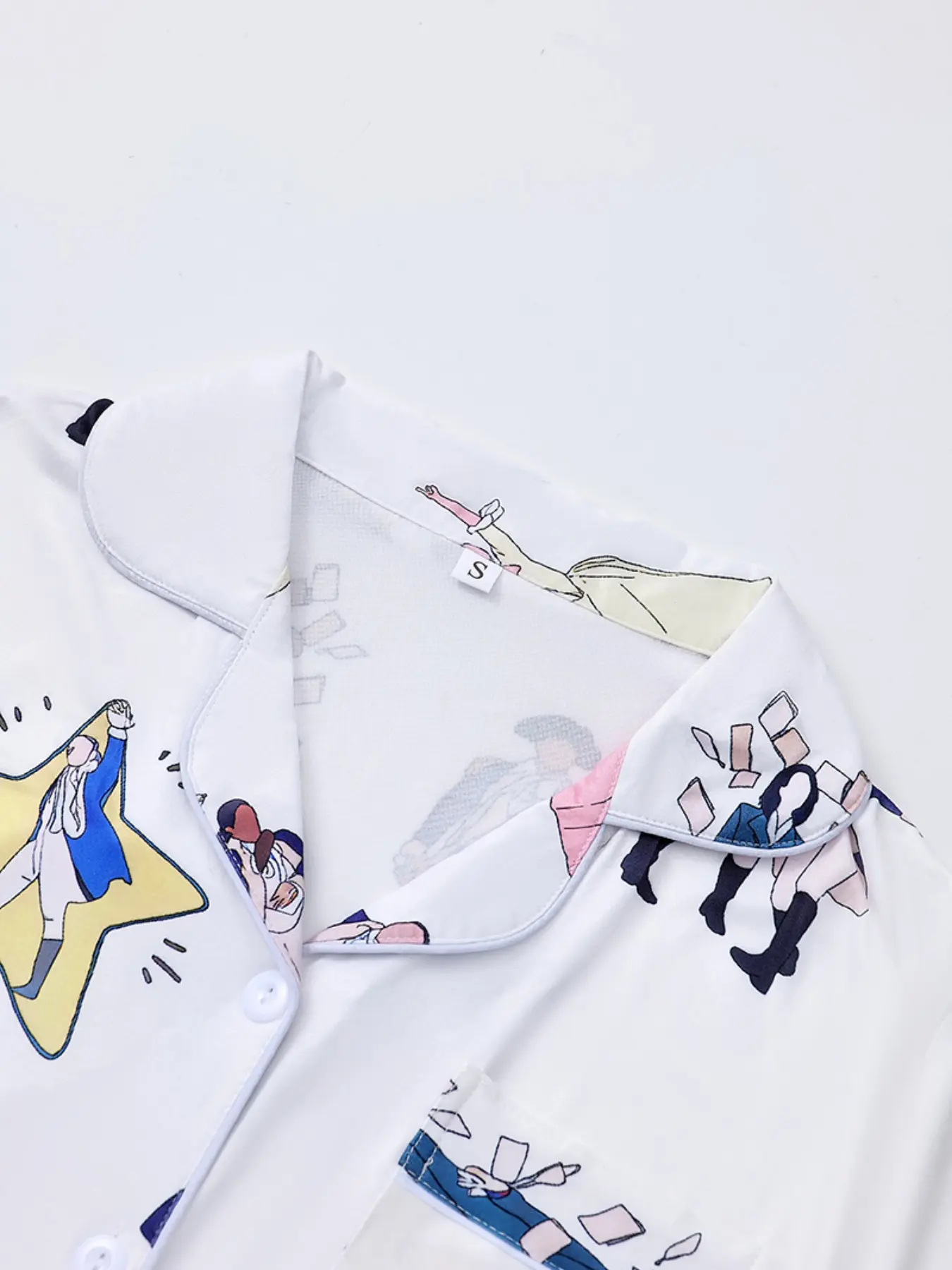 Women's Hamilton Music Print Pajama Set, Casual Comfy Pajama, Short Sleeve Shirt Collar with Buttons, Soft Comfortable Casual Homewear for All Seasons