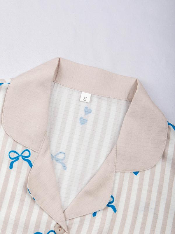 5. Women's Heart Bow Print Pajama Set 2 Piece, Casual Homewear Button Front Top & Elastic Waist Pants, Comfortable Sleepwear Loungewear