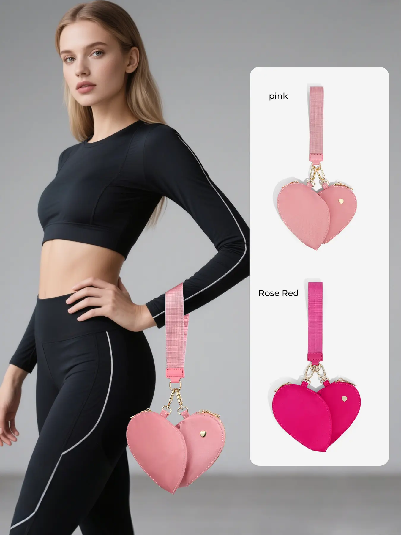 5. Women's Heart Dual Pouch Wristlet, Small Stylish Keychain Wristlet Strap, Mini Detachable Keychain Wallet, Portable Coin Purse for All Occasions