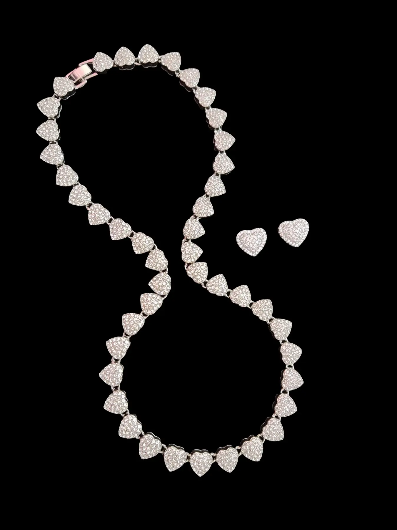 2Pieces/Set Women Heart Earrings & Necklace Set, Artificial Zircon Fashionable Jewelry Set, Street Style, All-Season Wear, Perfect Gift for Her
