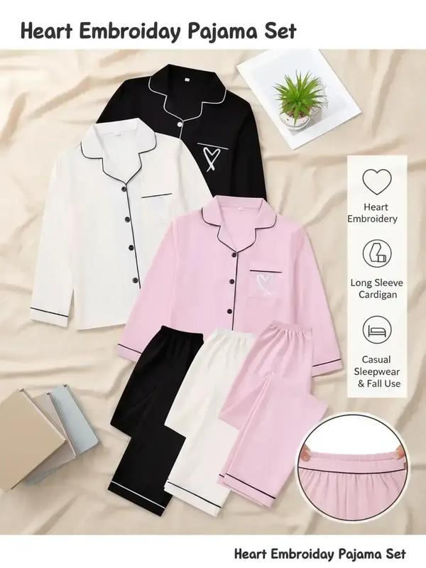 Women's Heart Embroidered Cardigan Set, Long Sleeve Elastic Waist Pants, Casual Comfortable Sleepwear, Spring & Fall Home Wear #womenspajamass #victoriassecretchristmaspajamas #braandunderwearset #allseasonsleepwear #aeriechristmaspajamas #womenspantssuit #sleepwearforwoman #prettygardensweatsuit #aeriechristmaspjs #winterpajamasset