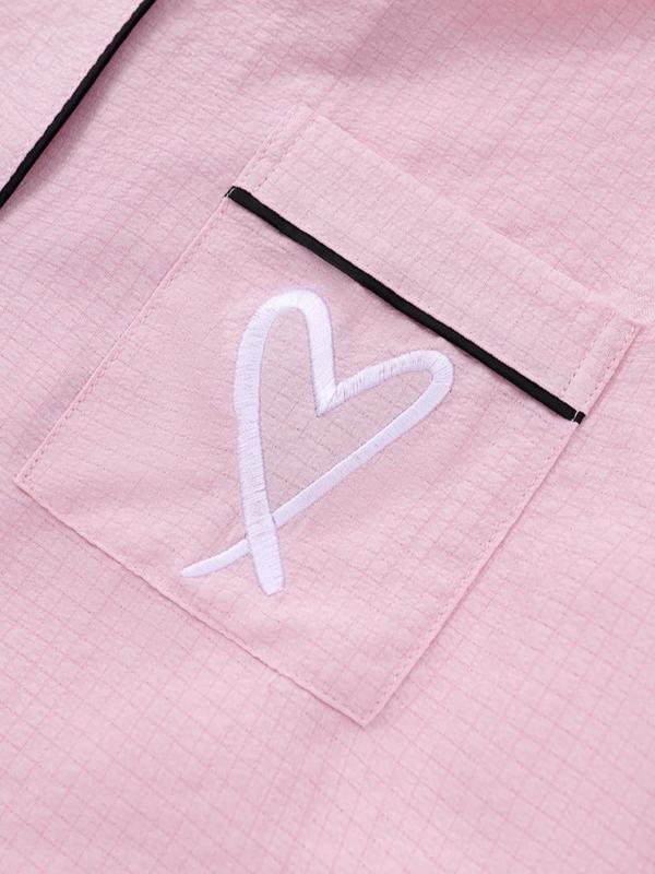 【Heart Embroidery】: Features a unique heart embroidery detail, adding a charming touch to the traditional loungewear set.