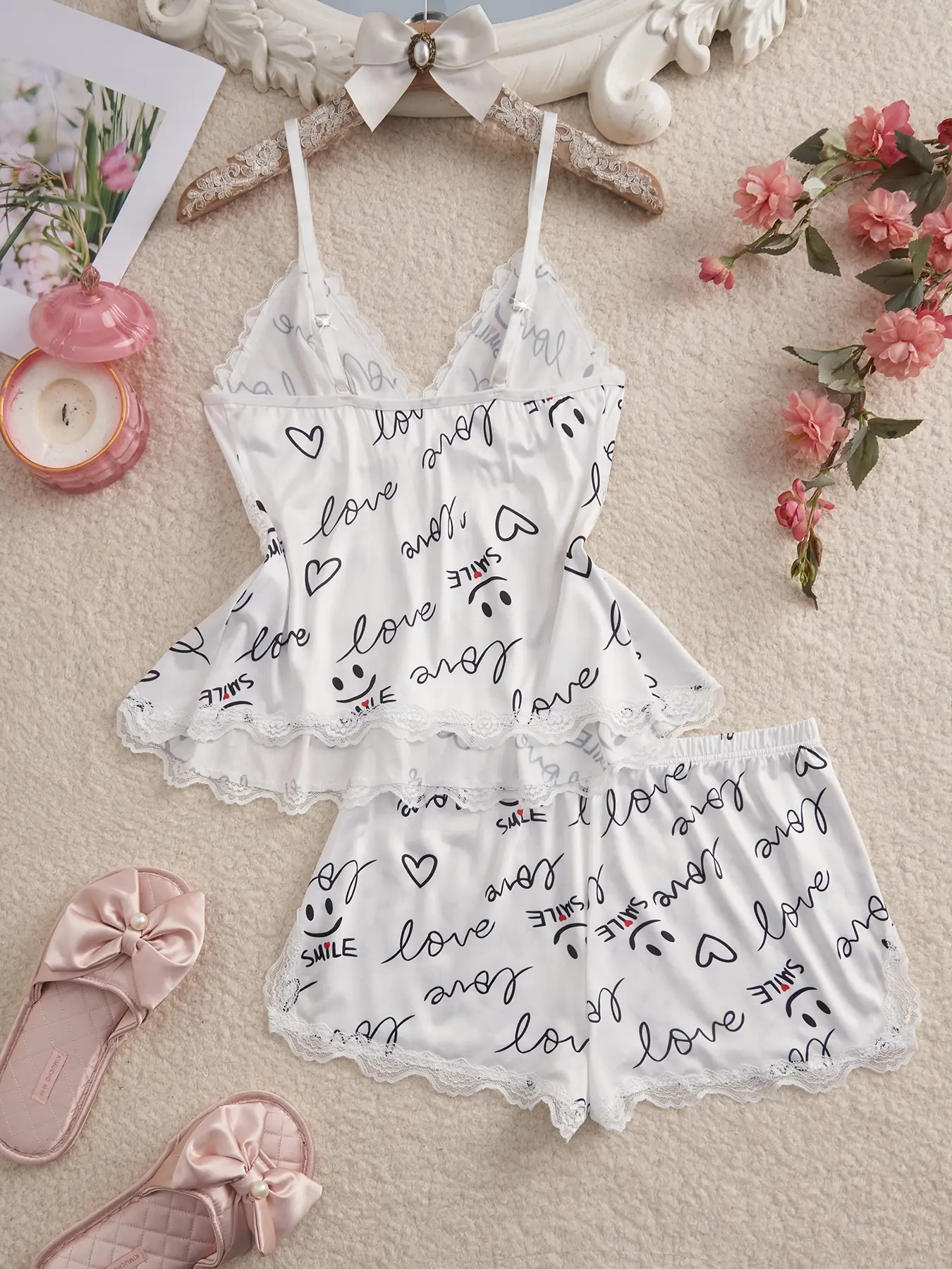 Women's Sleepwear Set with Shorts, Casual Fitted Design, All-Season Comfortable Loungewear, Plain Pattern, No Ca Prop 65 Warning, Heart, Lightweight