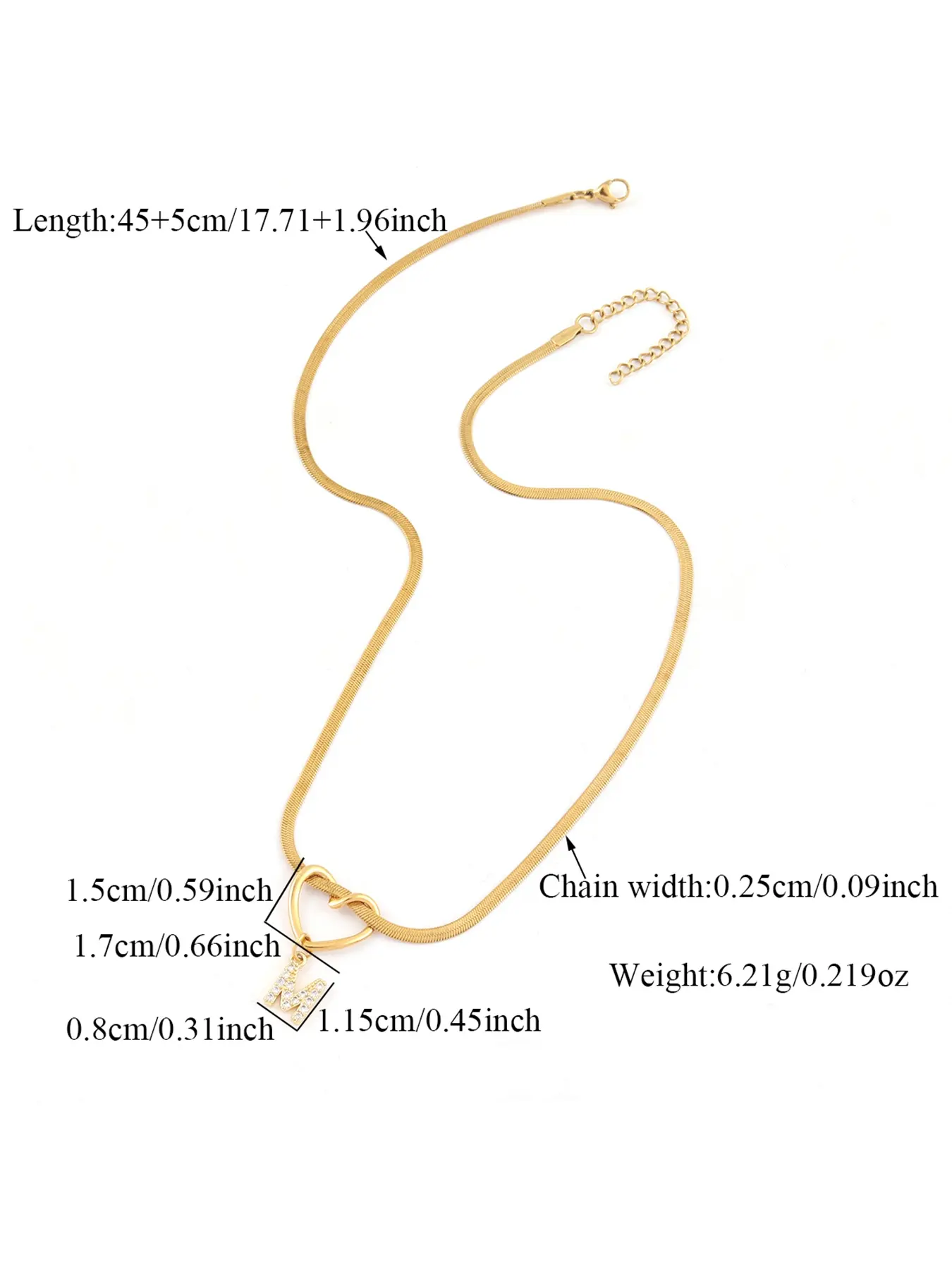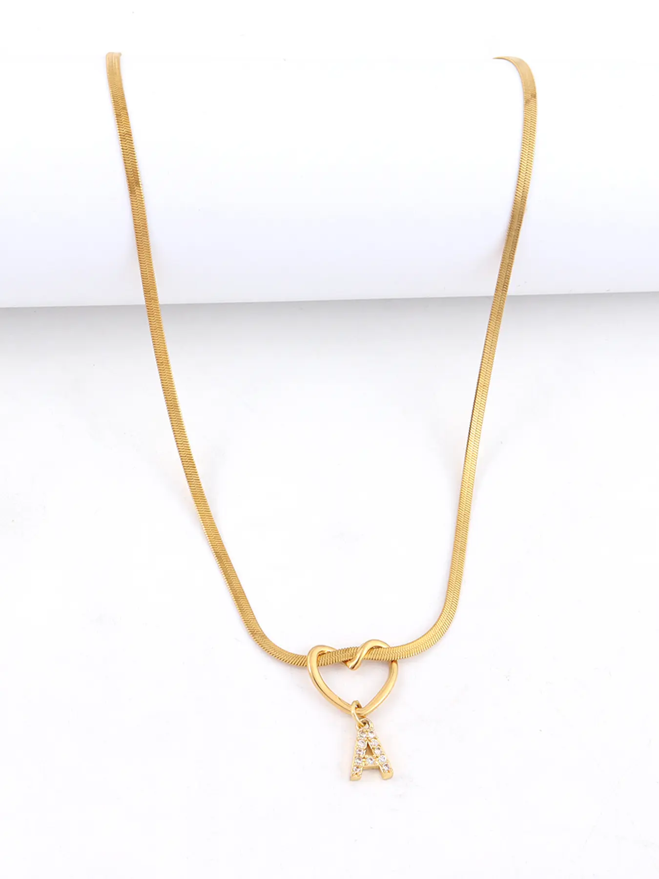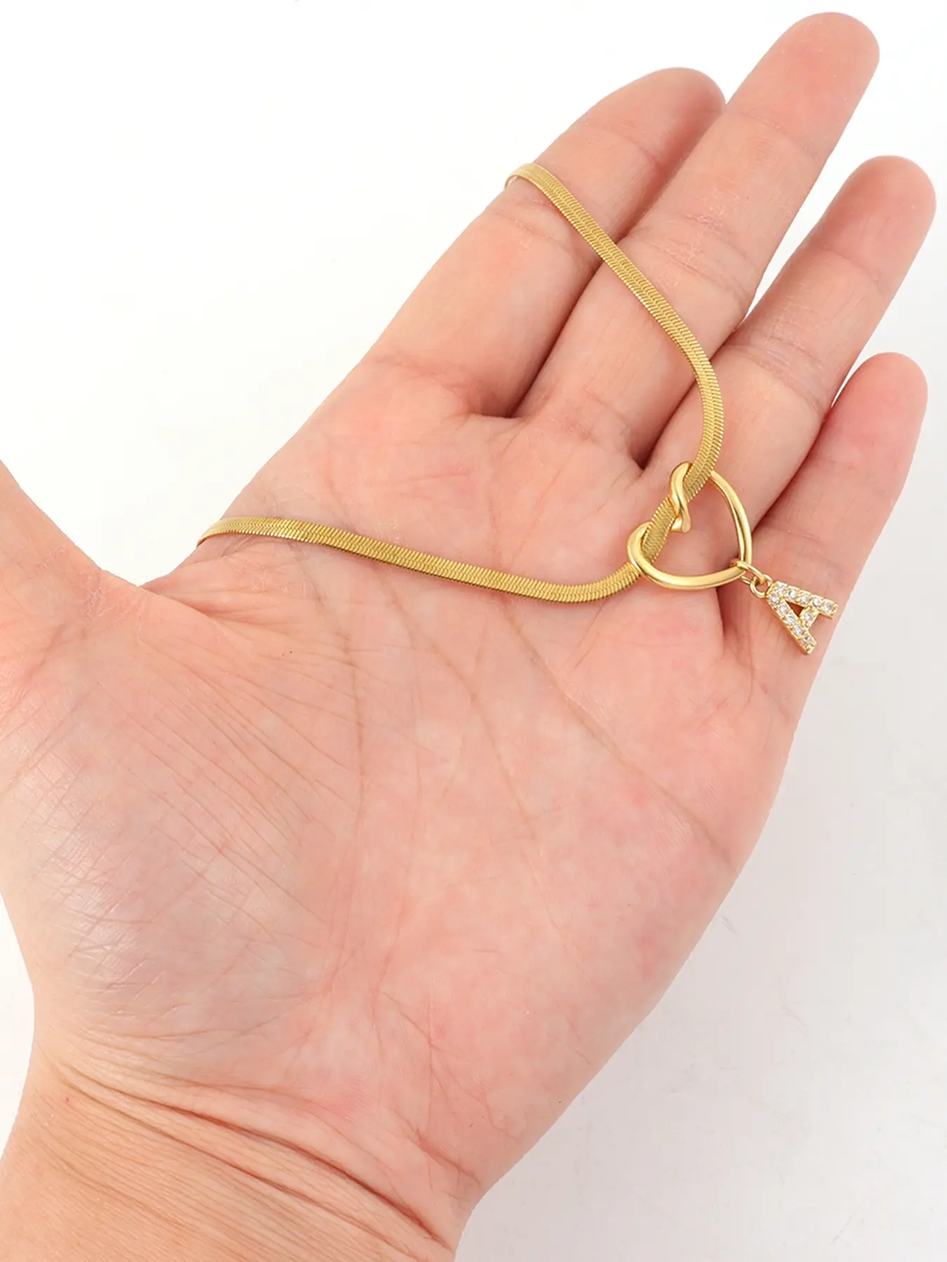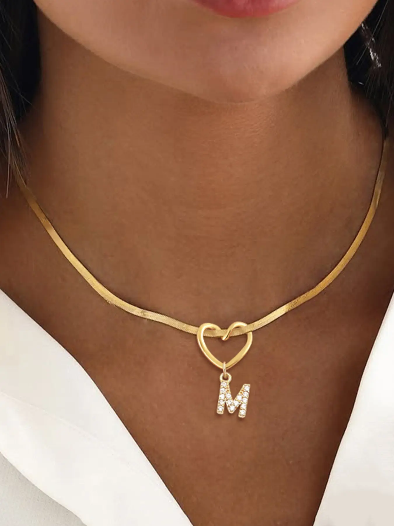 5. Women's Heart Pendant Necklace with Zircon Initial Letter Charm, Heart Shaped Pendant, Stainless Steel Herringbone Chain, Casual Fashion Jewelry Gift for Her Heart Design Necklace