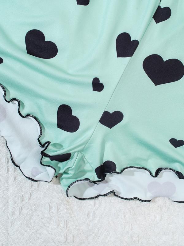 Fall into cozy cuteness with this 6-piece heart print pajama set – perfect for lounging, sleeping, or lazy weekends. The set includes a spaghetti strap cami top and matching elastic waist shorts, made from lightweight, breathable fabric. It keeps you cool and comfy all summer long.