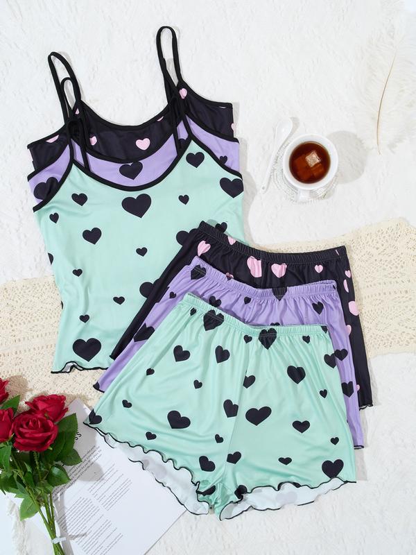 🌟 6 Piece Set Women's Heart Print Cami & Short Sleeve Pajama Set 🌟