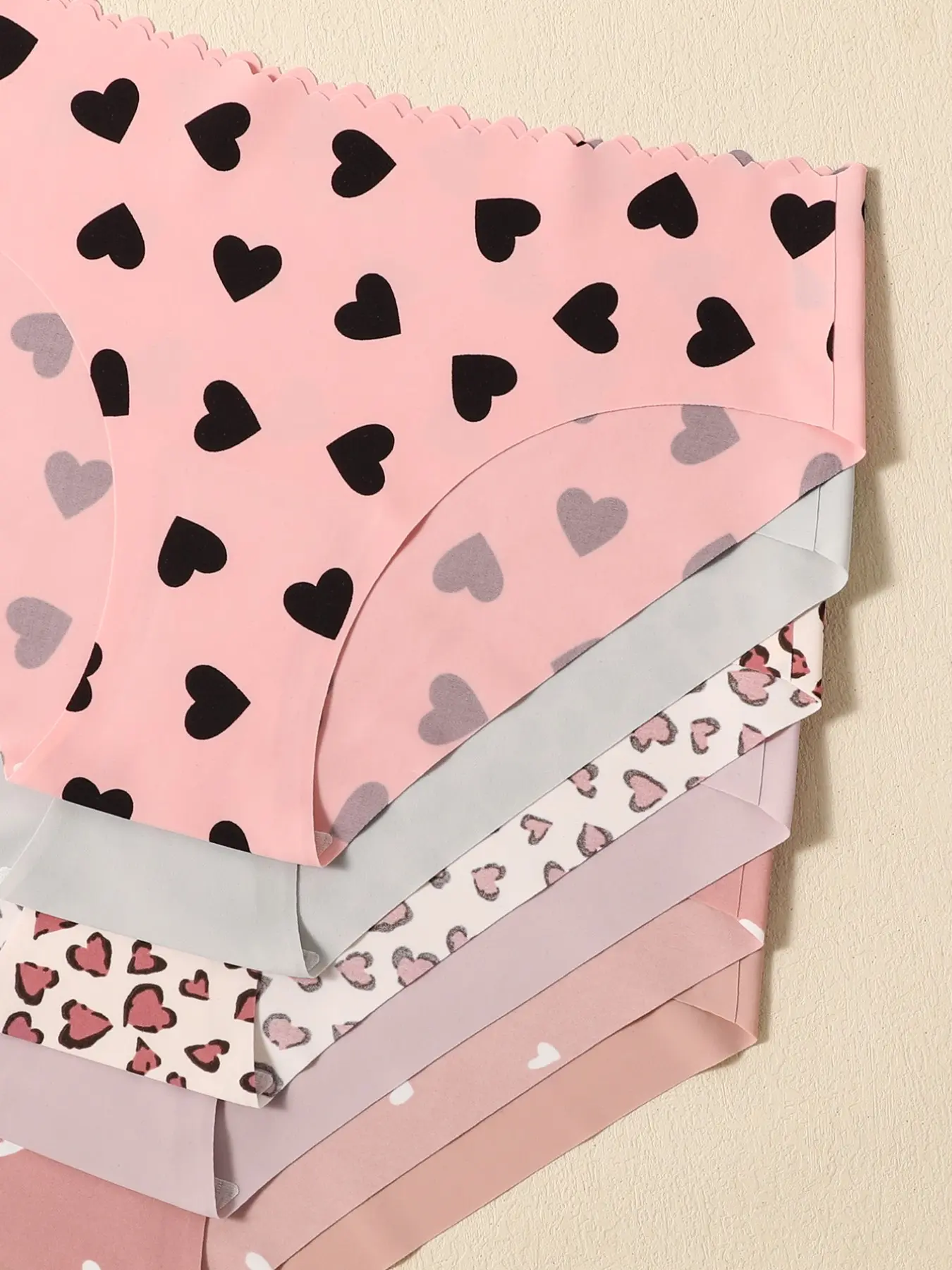 5. Women's Heart Print Panties, Soft Comfortable Invisible Fit, Triangle Underwear Set, 6 Pieces, Skin-Friendly