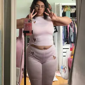 The best things about this set is the pants are tall girl friendly and the hearts. I’m 5’6” and 235lbs and I got the L black, the only downfall is that it’s very cheap material and it started to rip as soon as I pulled it over my head and on my waist