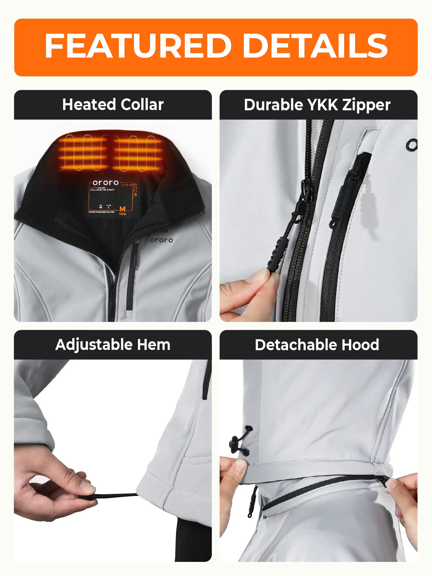 Love the ORORO products. This jacket is true to size, is a great material, & my favorite part is that the pockets are a heated zone!!!