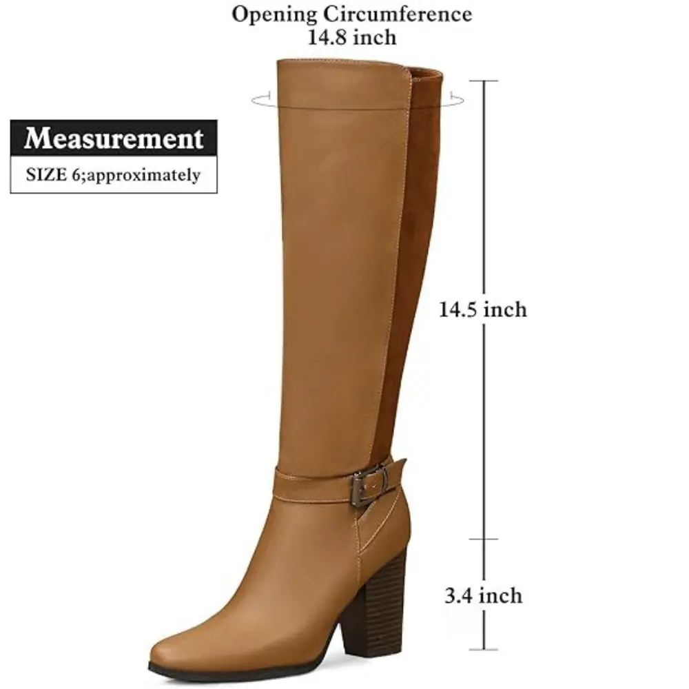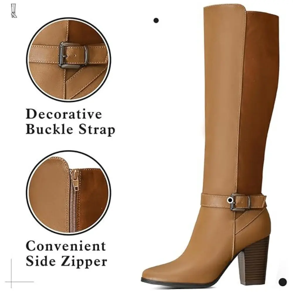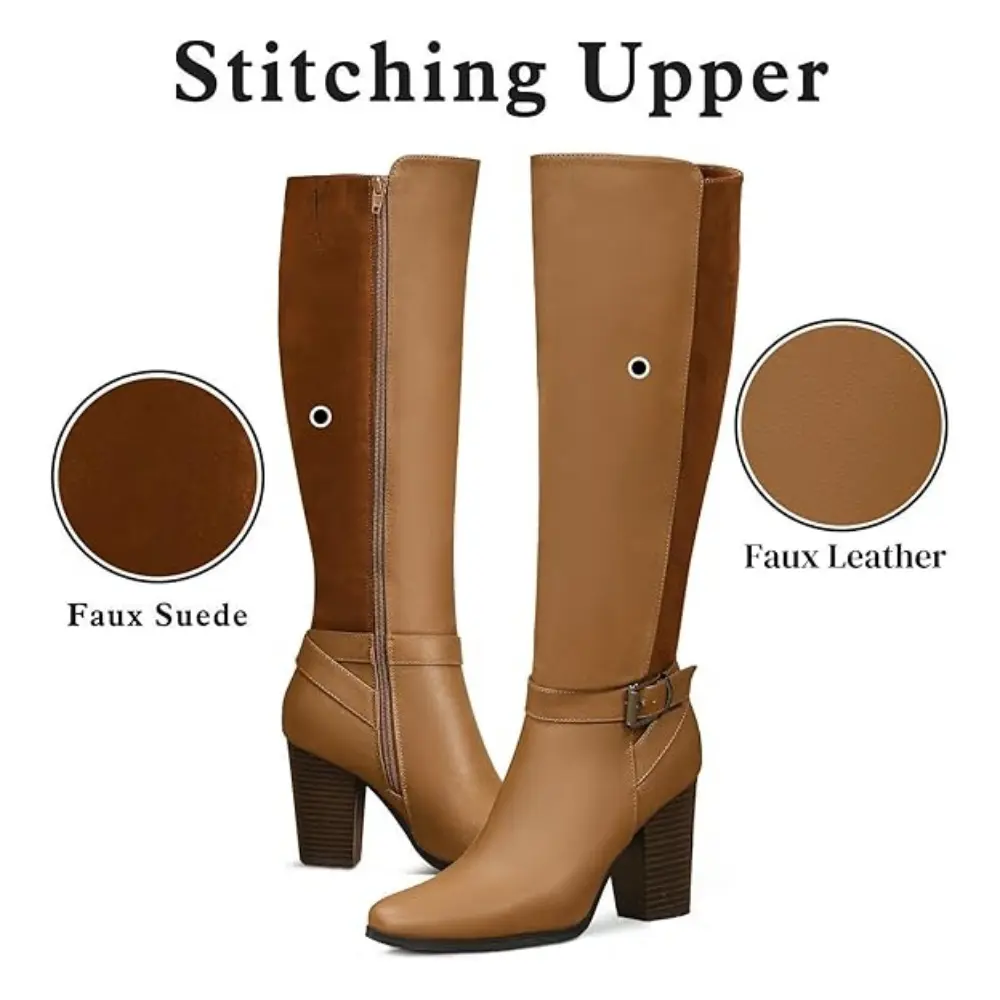 ·CHIC DESIGN: This knee high boots is crafted from high quality artificial leather with durable faux suede stitching upper, and detailed with decorative buckle strap for a trendy look. Katliu heeled boots are as stylish as they are serviceable.