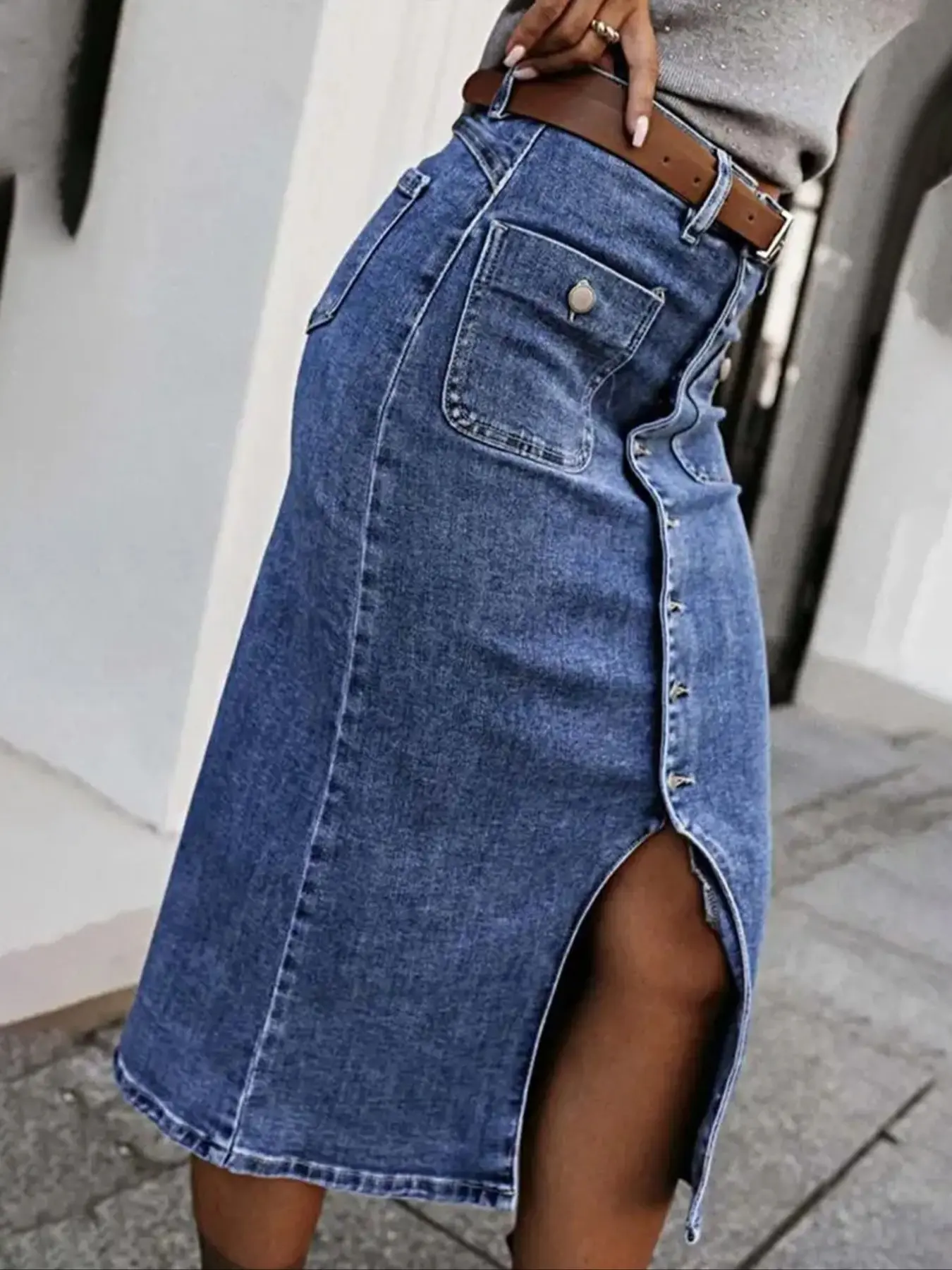 This high elastic denim half skirt is the perfect mix of comfort and style. The stretchy fabric hugs in all the right places without feeling tight, and the button closure gives it that classic, polished look. Perfect for daily wear, casual outfits, travel days, brunch dates, or running errands in style. If you’re building a timeless capsule wardrobe with comfortable trendy pieces, this is a must-have denim skirt. #denim #denimskirt #denimskirts #ootd #summerstyle