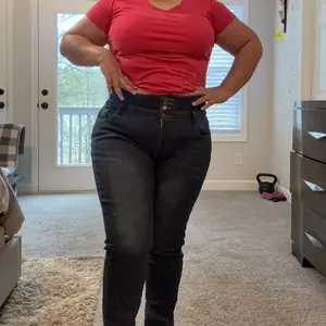Me Encantó, soy una persona llenita 🤭 y batallo mucho para encontrar Jeans que me ajusten, este me quedó a la perfección, tiro alto, con stretch y sostén al estómago + lo más encantador muy calientito lo recomiendo %. (Talla XL)