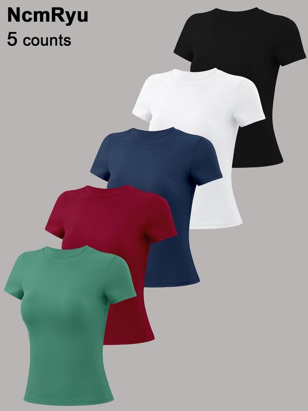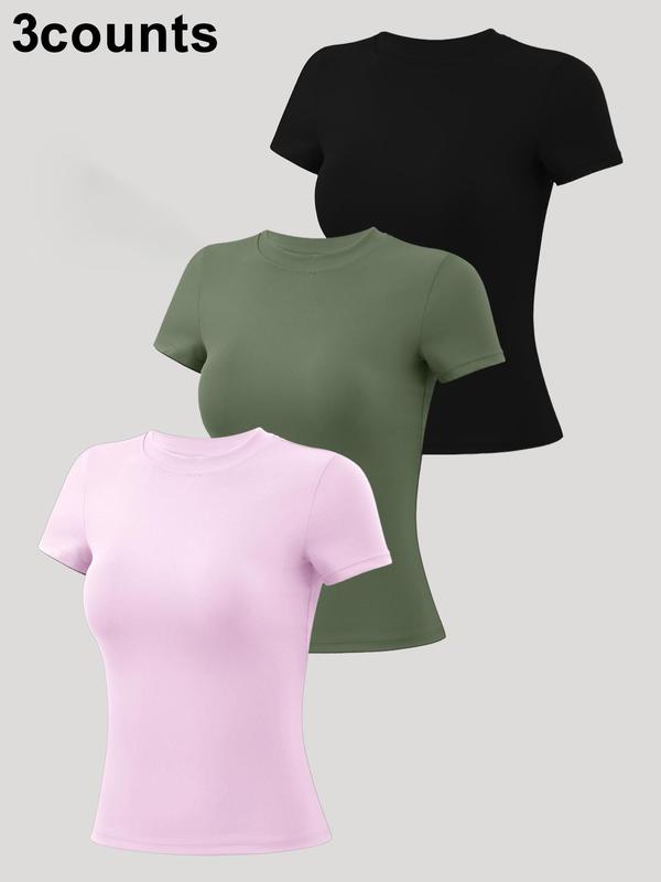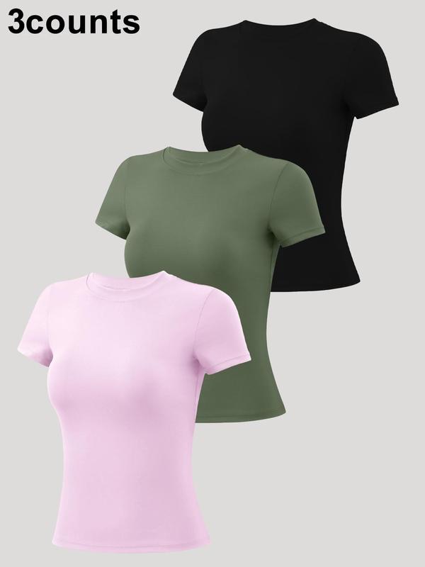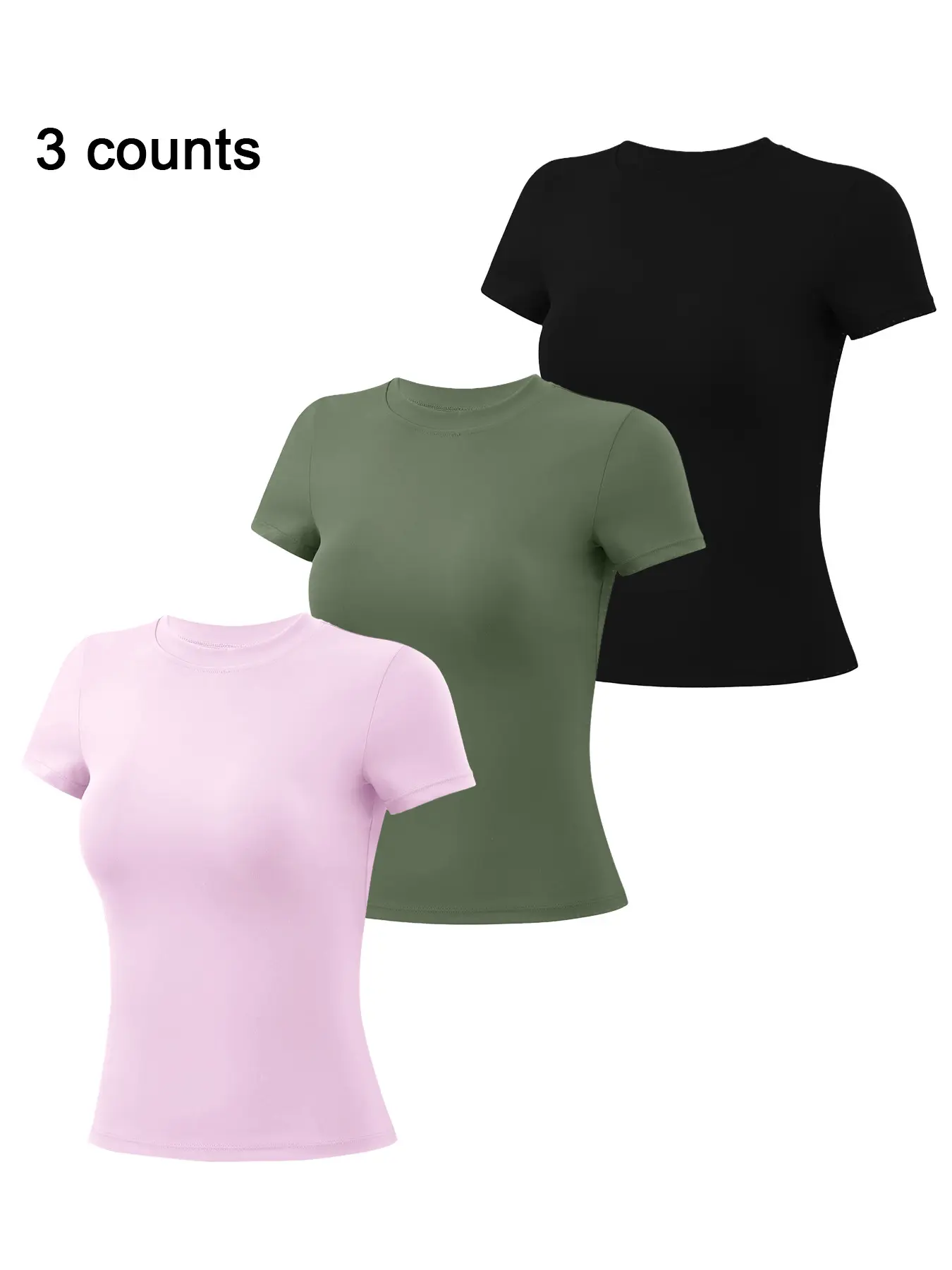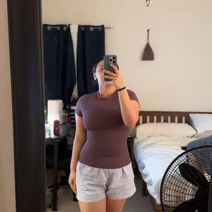 My new favorite basic t for both gym and just every day wear. Super soft, stretchy, and fabric is a good thickness. Was able to wear the light pink shirt with a dark sports bra and couldn't see it at all through the shirt!