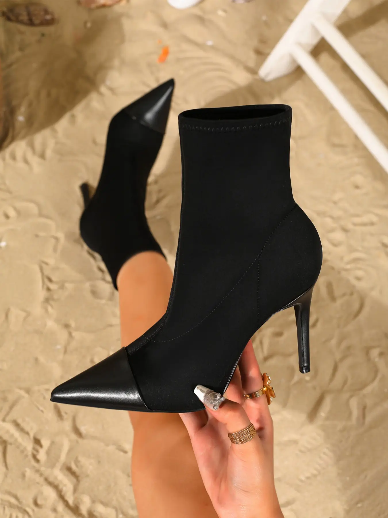 【Pointed Toe】: The pointed toe design contributes to a chic and elongated leg line, enhancing overall aesthetics.