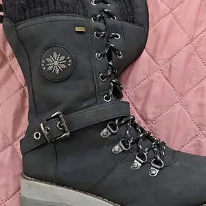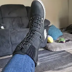 Absolutely LOVE these!! Bought the red pair too. Super comfortable, warm, and they lace up around my bigger calves with no gaps in the front!
