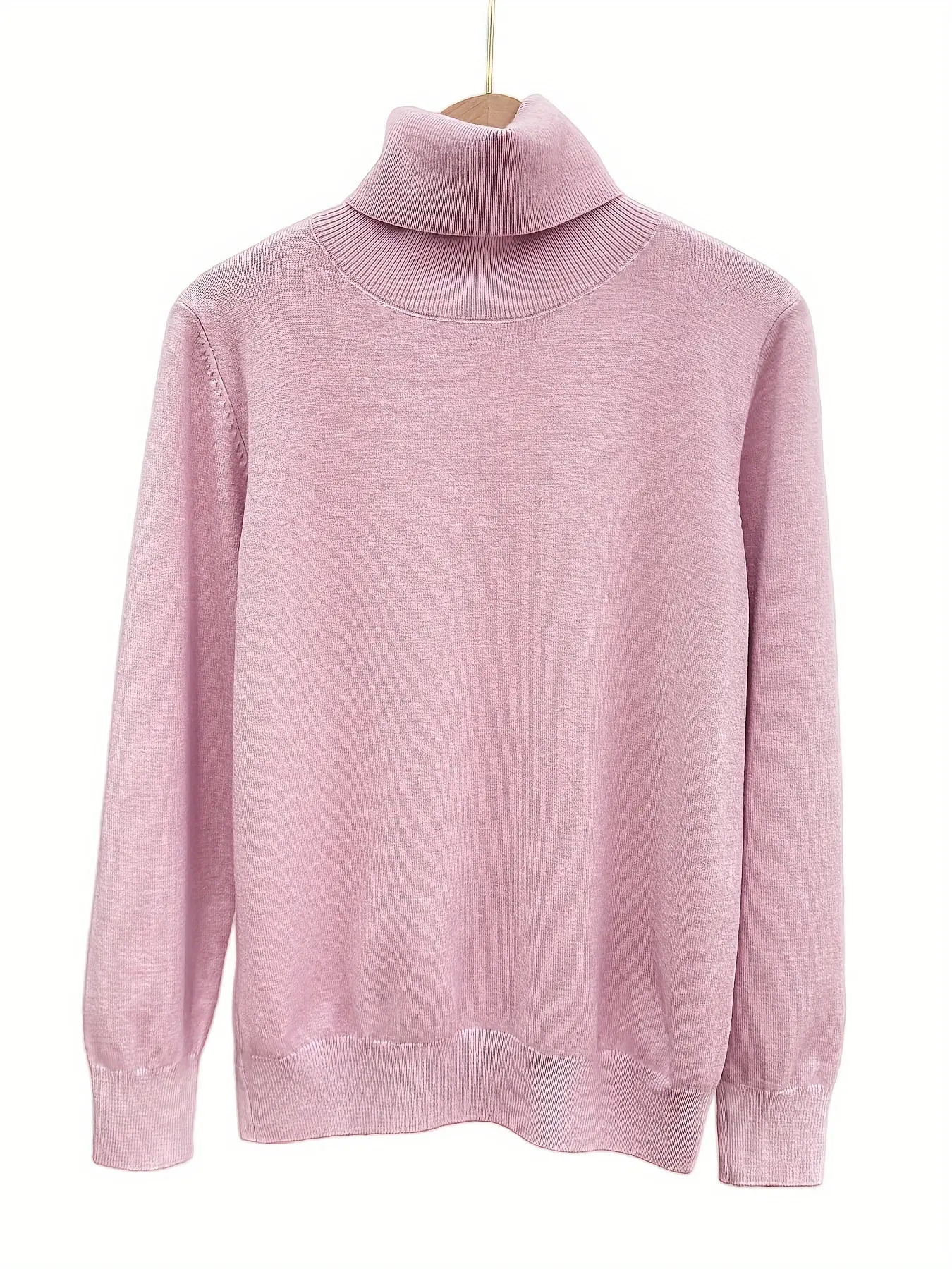 Women's High Neck Pure Color Knit Sweater, Slim Fit Long Sleeve Inner Layer Outerwear, Versatile Fall Winter Top, Knitwear #womenssweatshirtset #womensclothingtiktokshop #fashionablewomensclothing #plussizesweaters #pulloverhoodie #womenssweats #knitclothing #fullerlengthtops #knitwearfashion #rudolphcrewneck