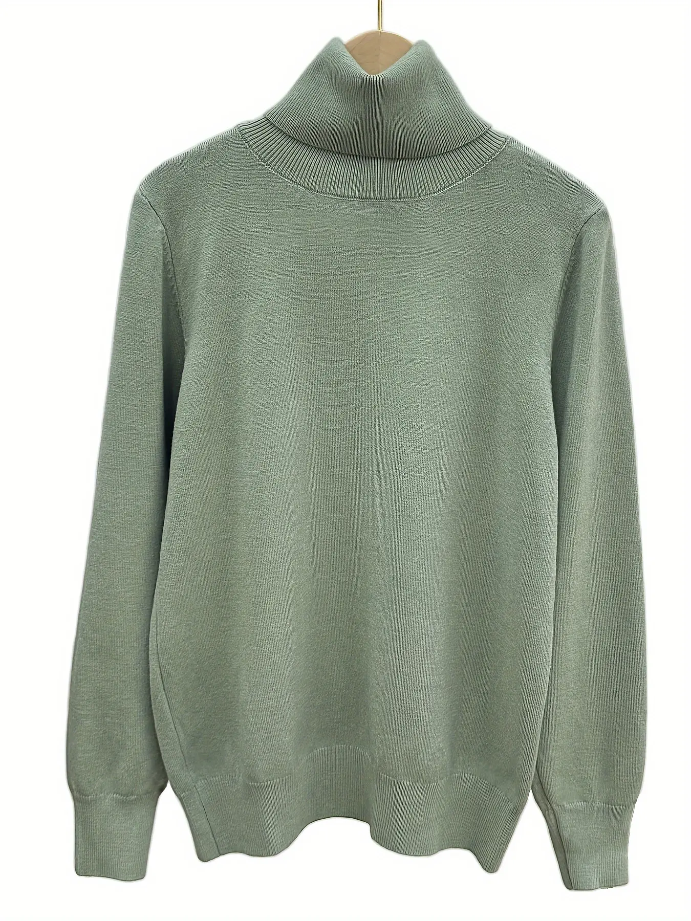 Women's High Neck Pure Color Knit Sweater, Slim Fit Long Sleeve Inner Layer, Versatile Fall Winter Top, Casual Daily Wear #sweaters #highwaisttummycontrolpantiesforwomen #highwaistpantsforwomen #fullerlengthtops #squarenecktop #highqualityfashion #trendytops #womenstees #tallclothes #turtlenecktop