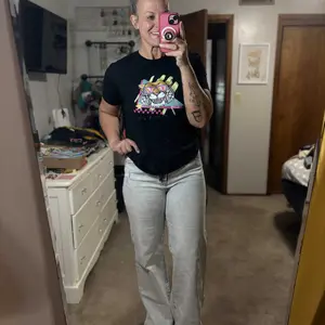 Softest jeans you’ll ever wear. A little snug on my belly, but it’s my body shape. Fit great everywhere else. They were slightly long so I had to cut about 3 inches, but I’d buy them again anyway. 90s Jean vibes 🩷 love them.