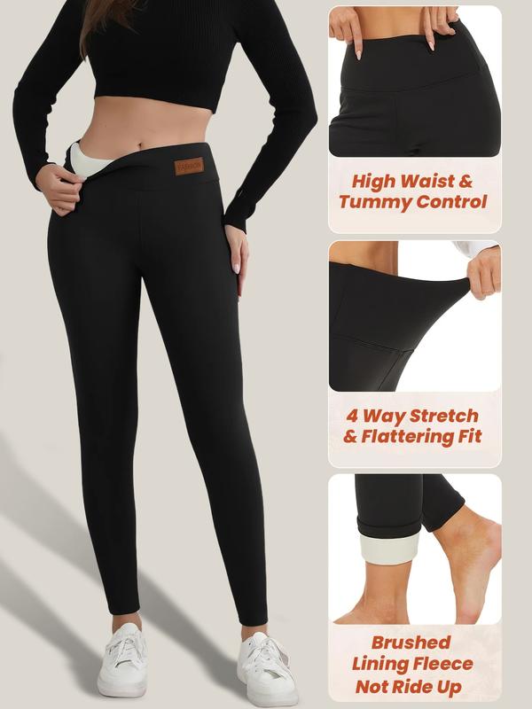 4 Pcs High-Stretch Fleece Yoga Pants with Pocket, Women's Solid Color Activewear Leggings for Running Fitness Sports