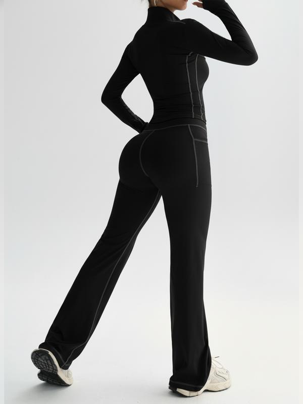 5. Women's High Stretch Quick-Dry Breathable Long Sleeve Top and Wide Leg Pants Set, Sporty Plain Design, All Seasons Wear