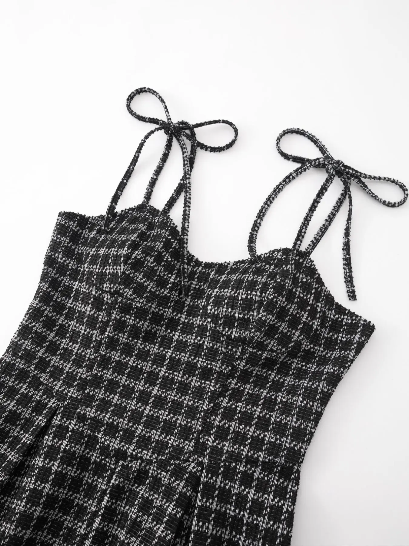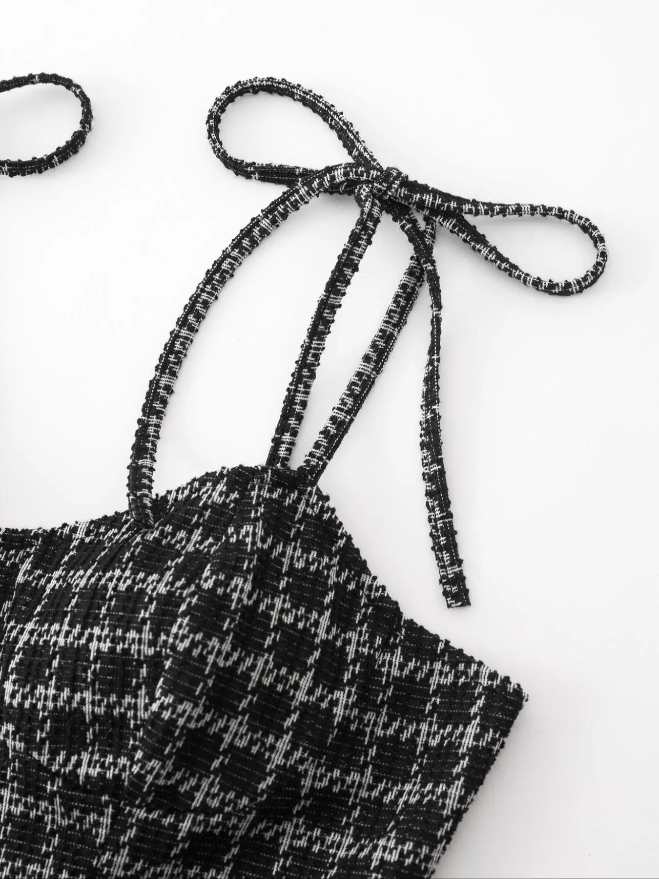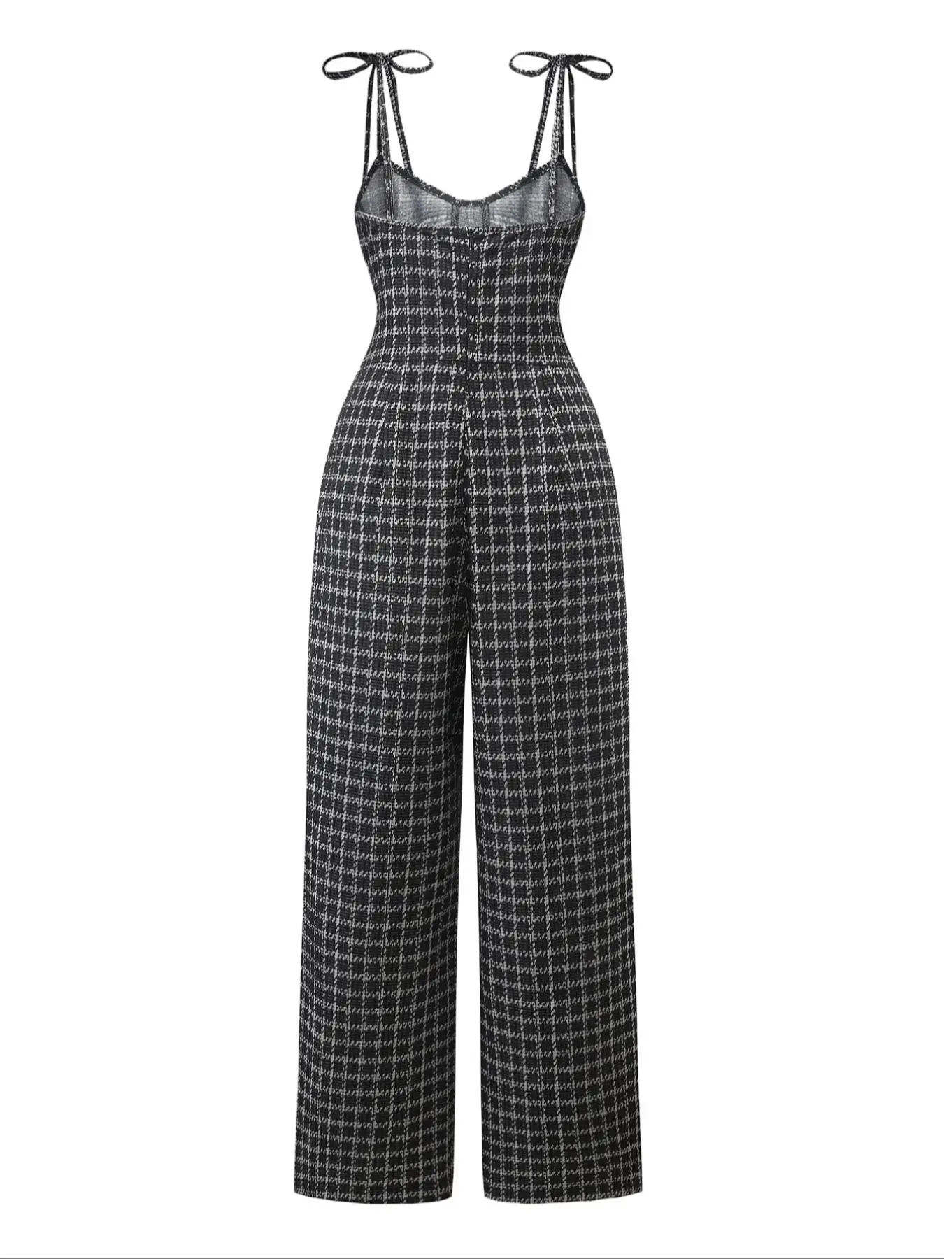 A flattering tweed jumpsuit with delicate tie straps and a tailored waist. Elegant, modern, and perfect with heels for a polished look. ✨Tap to Shop✨ #OOTD #tiktokshop #tiktokshopcreatorpicks #spring #ootdfashion