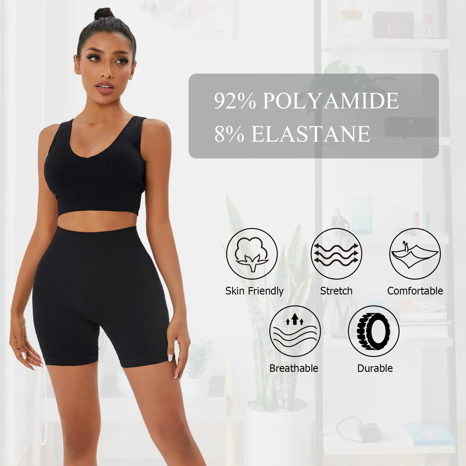 ·[Main Fabric] - This ribbed shorts made with lightweight,moisture-wicking power fabric.High elasticity, Comfortable, Breathable,Dry,The 4-way stretch to promote both compression and butt lifting, upper leg muscles and reduce muscle vibrations.