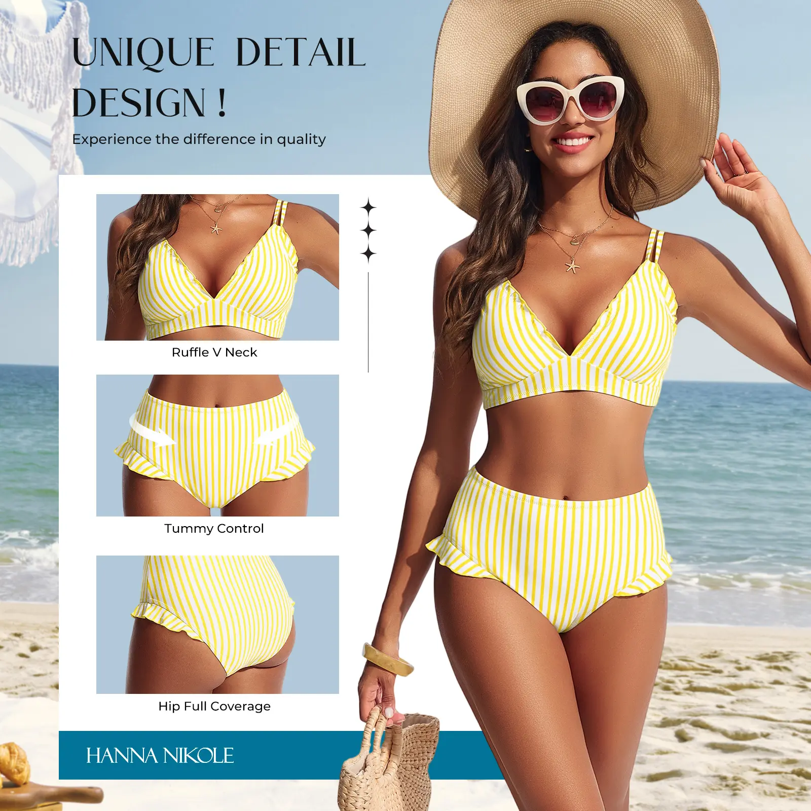 Feminine Ruffles ● Adjustable Straps ● High Waisted ● Tummy Control ● Wire Free
