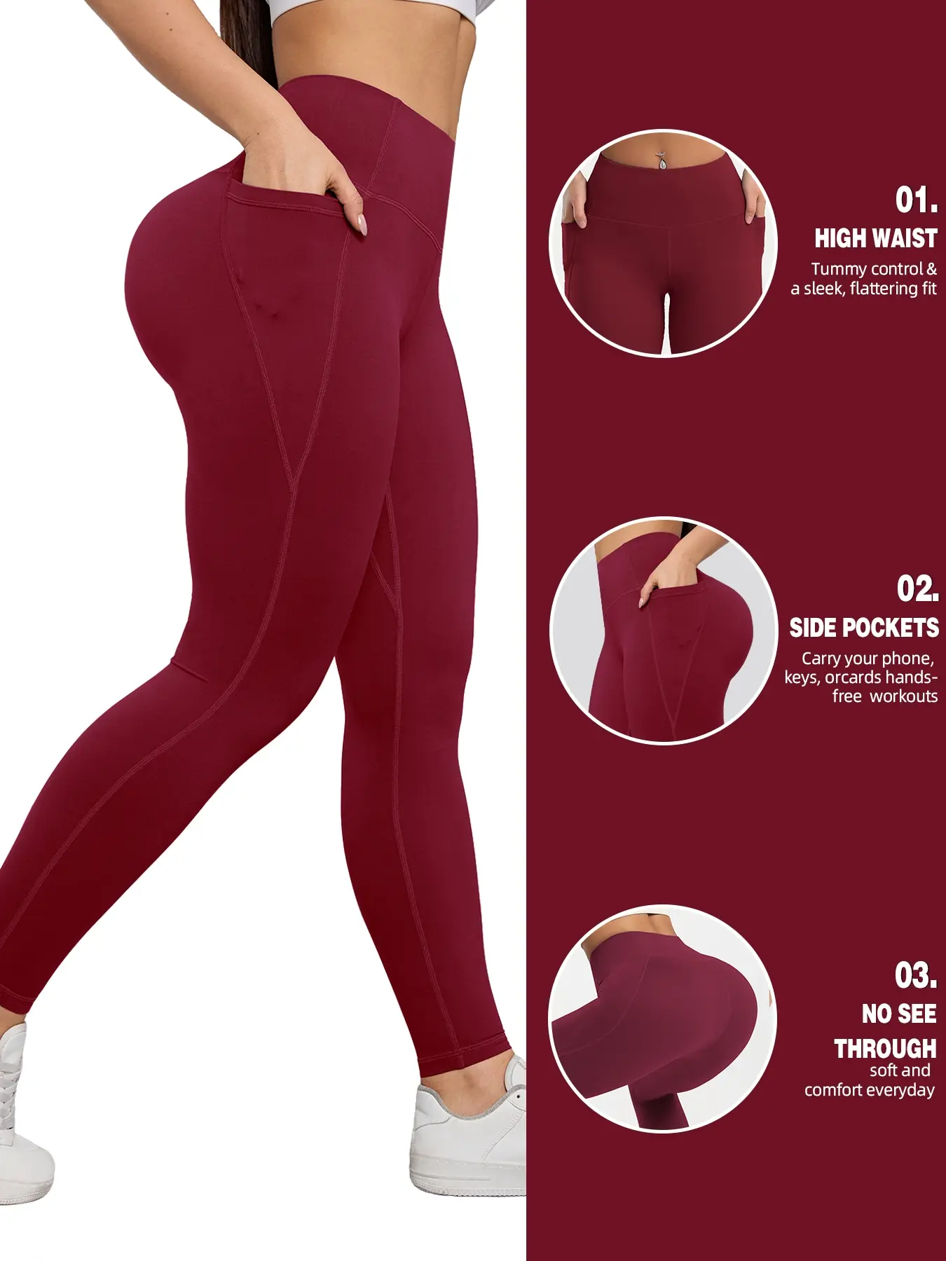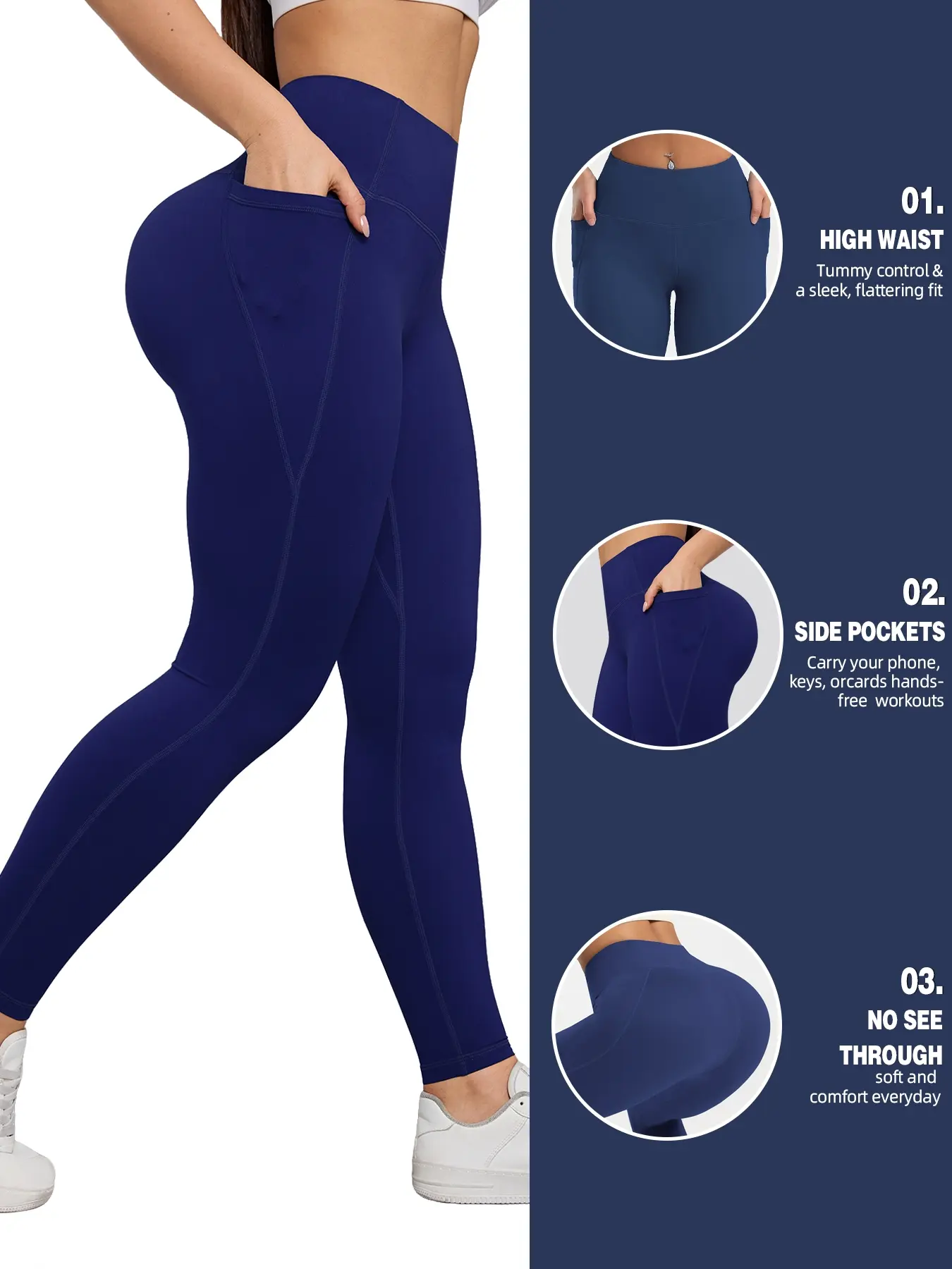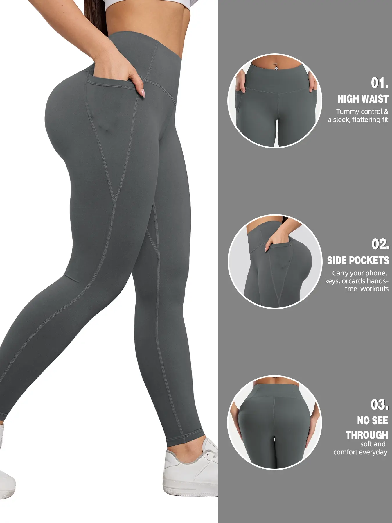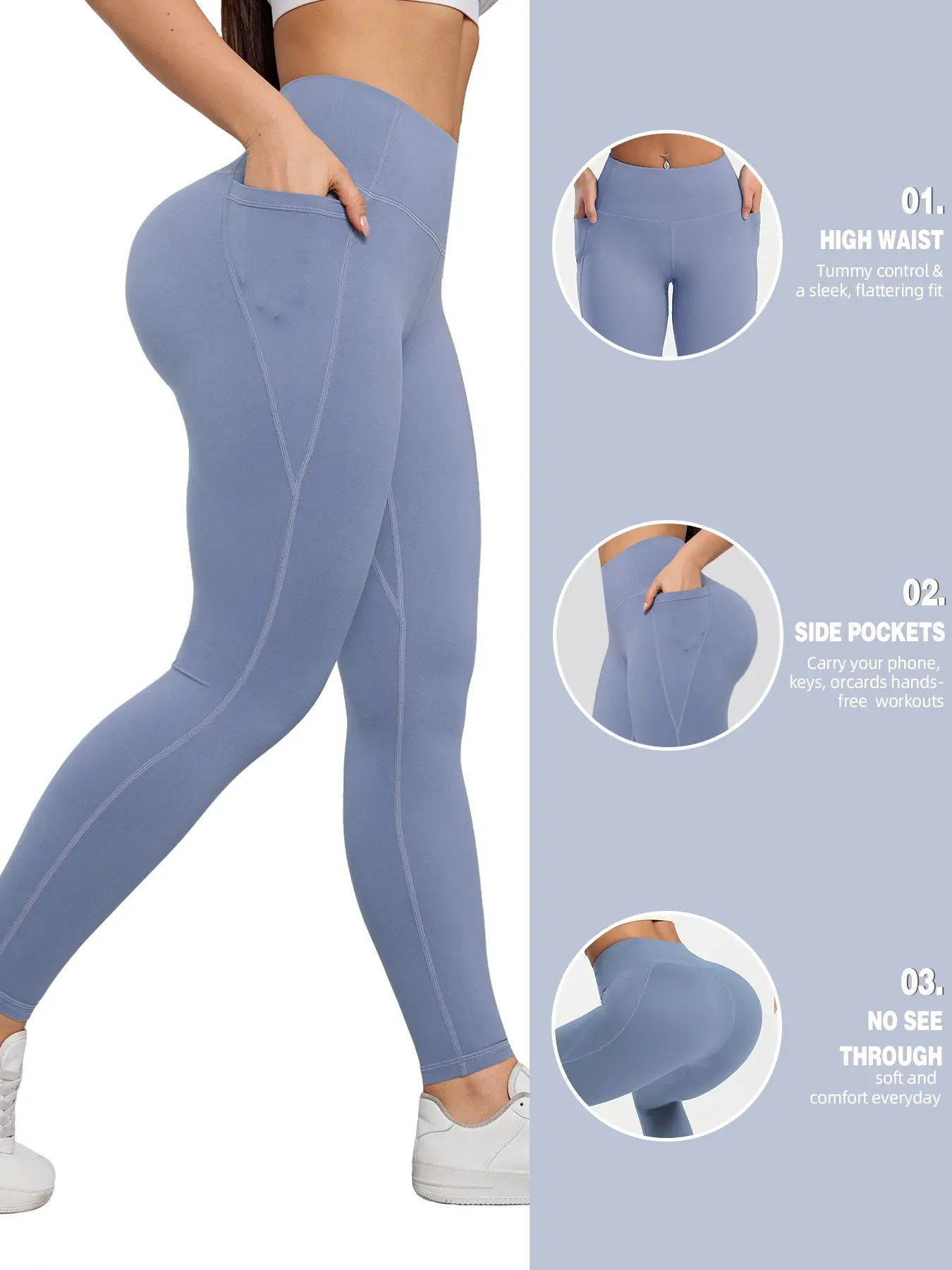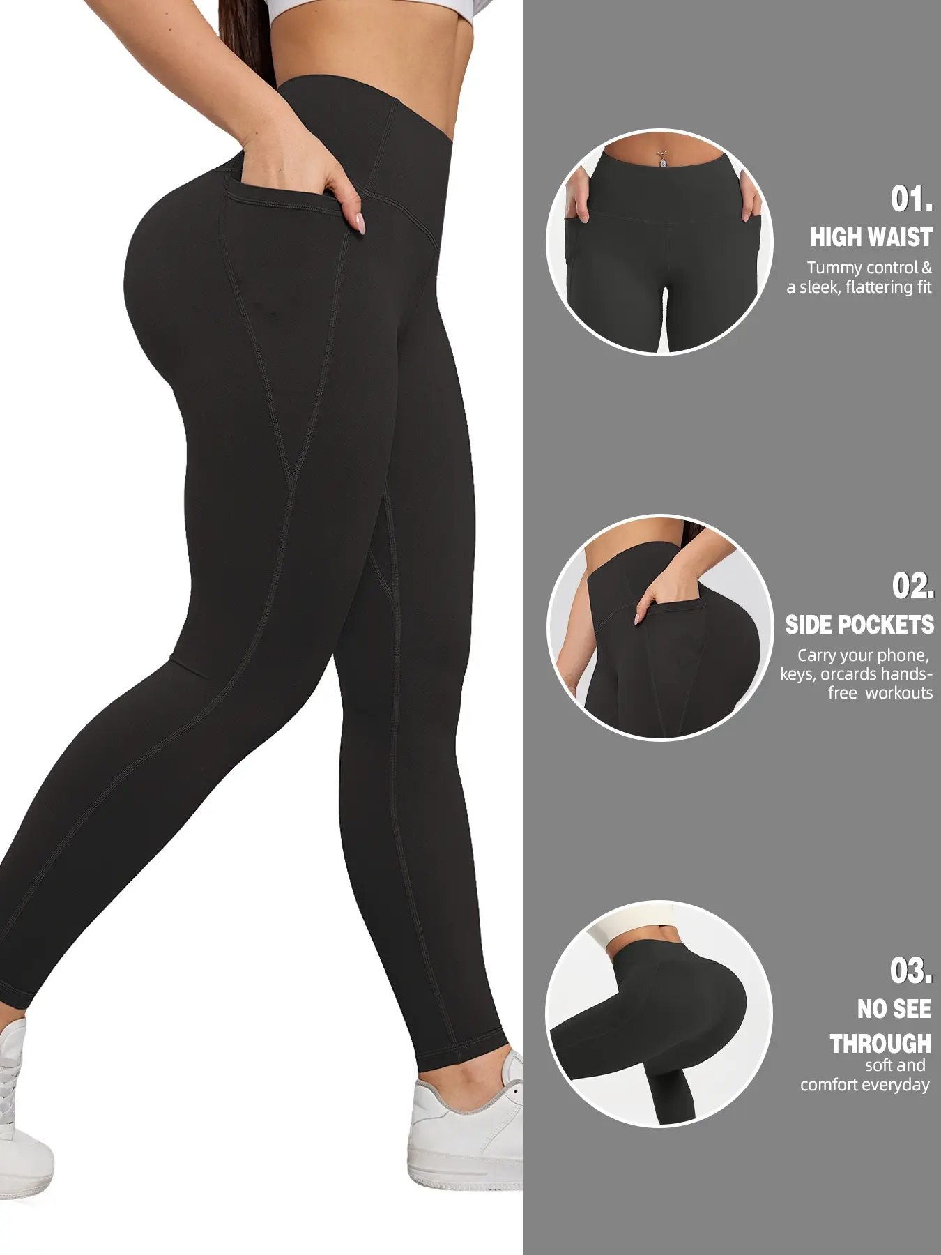 5. Women's High Waist Butt Lifting Tight Pants with Pockets, Shaping Belly Control Yoga Workout Pants, Comfortable Sports Tights, Elastic Waist Leggings