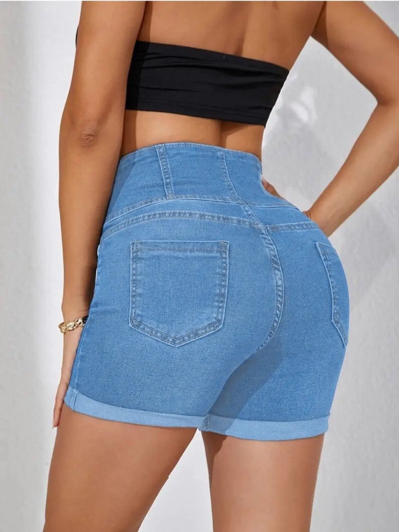 Women's High Waist Denim Shorts, Casual Comfy Button Fly Skinny Shorts for Daily Wear, Ladies Bottoms for All Seasons
