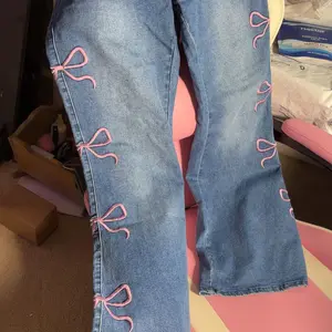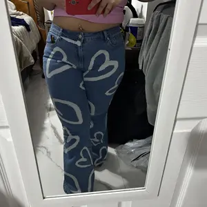 Fits is nice stretch in legs 🦵I’m 5\7 234lbs and I’m in a size xxl nice flare at the bottom the bows are beautiful sewn into the legs, they are pink