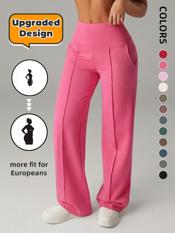 Women's Plain Loose Straight Leg Pants, Wide Leg High Waist Sporty Casual Sweatpants with Pockets, Comfortable Daily Wear Casual Comfy Sporty [Fits Small - Size Up Recommended]