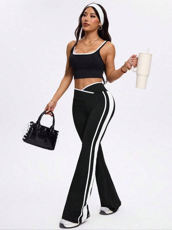 5. Women's Colorblock Yoga Flare Pants, Gym Sportswear Bottoms, Knitted Fleece Casual Long Pants for Fall Winter, Ladies Fashion Clothing