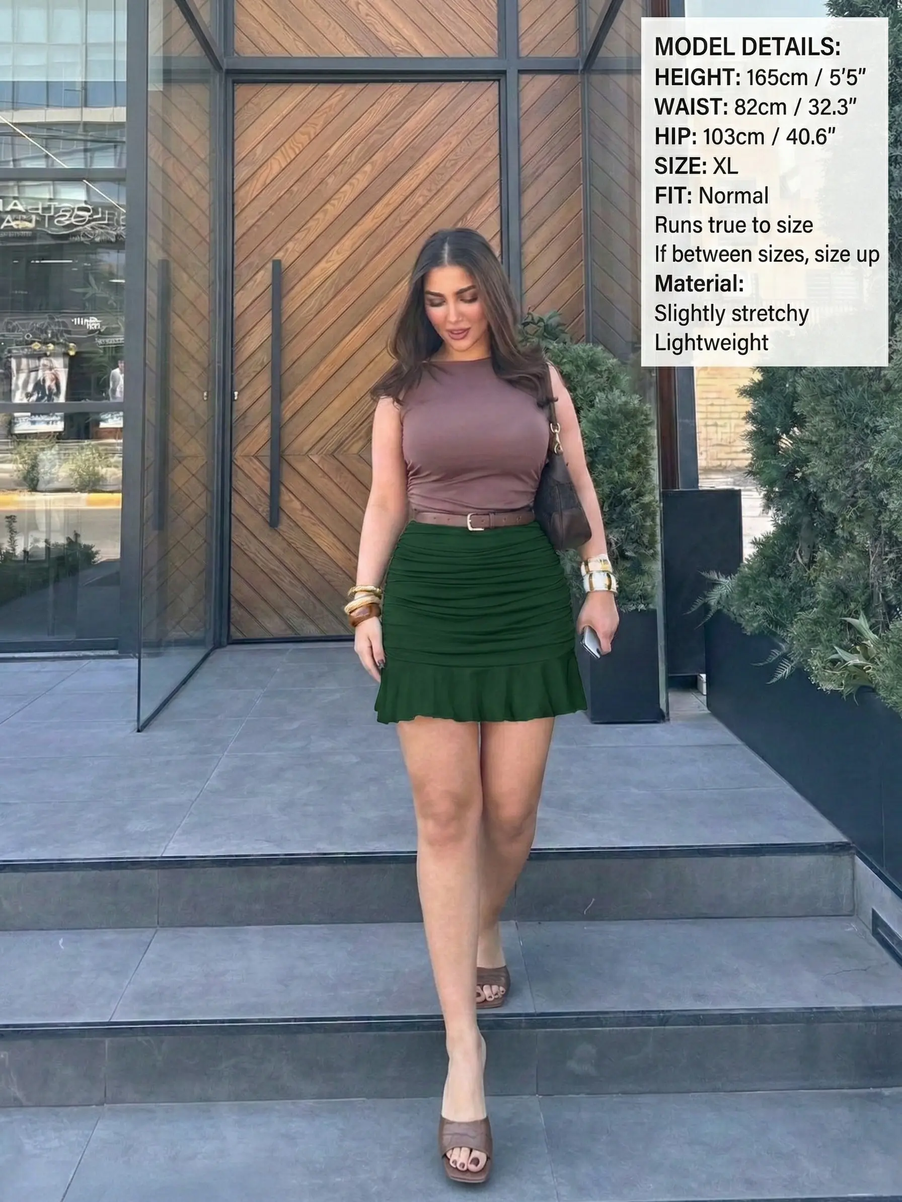 Women's High Waisted Ruched Mini Skirt Ruffle Hem Bodycon Stretchy Skirts  2026 Trendy Lightweight Summer ApparelWomen's High Waisted Ruched Mini Skirt Ruffle Hem Bodycon Stretchy Skirts  2026 Trendy Lightweight Summer Apparel