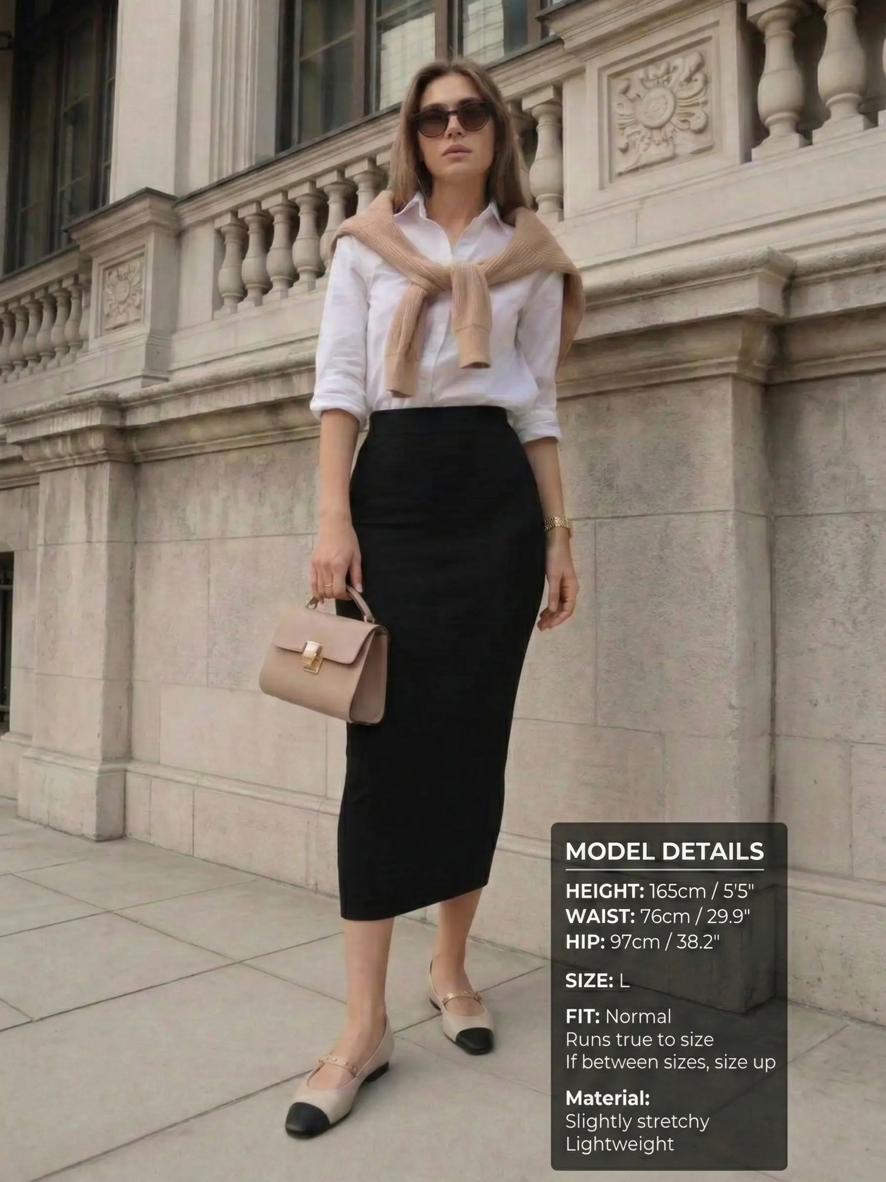 Halara Flex High Waisted Pockets Bodycon Washed Denim Casual Midi Skirt