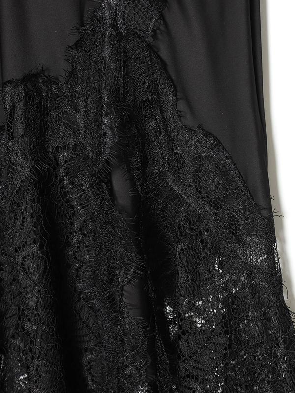 5. Women's High Waist Satin Lace Long Dress, Asymmetric Decor Y2K Evening Gown, Layered Elegant Midi Skirt for Spring Summer Fall Winter